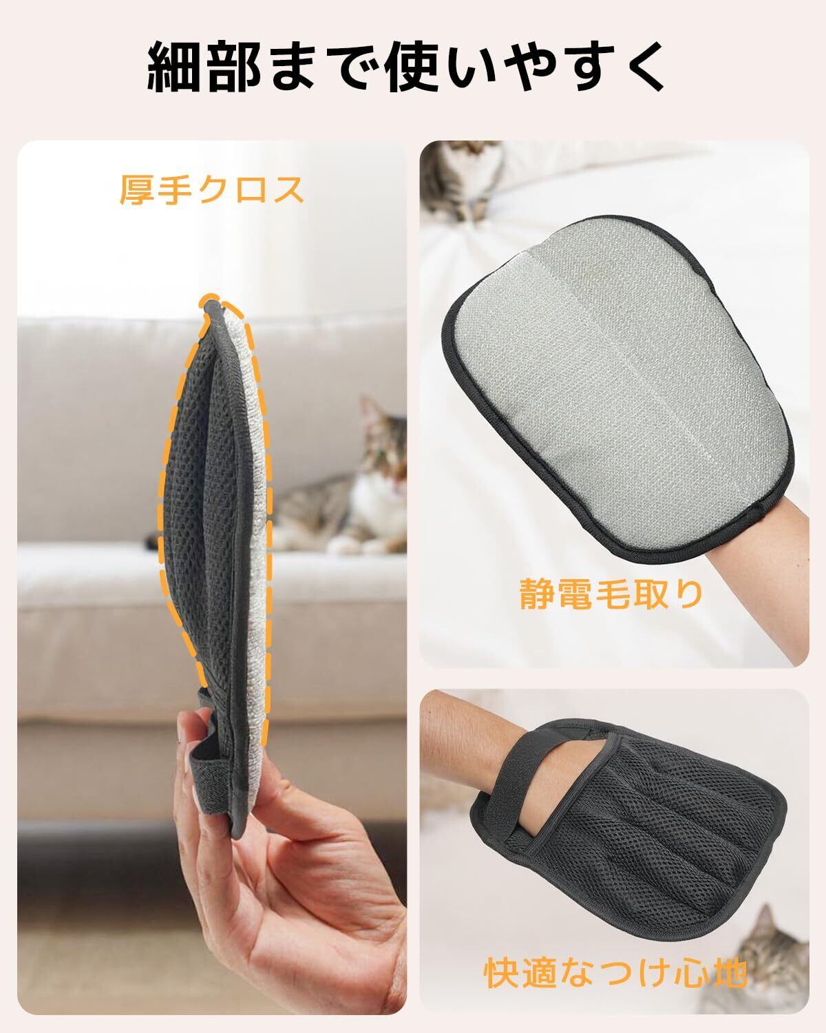 【2025改良型】らくらく抜け毛グローブ 猫の毛取り 手袋 ペット犬猫グルーミンググローブ 静電気除毛手袋 猫毛取りグローブ 猫の毛除去手袋 再利用可能 五本指タイプ ソファー カーペット 猫の毛 掃除