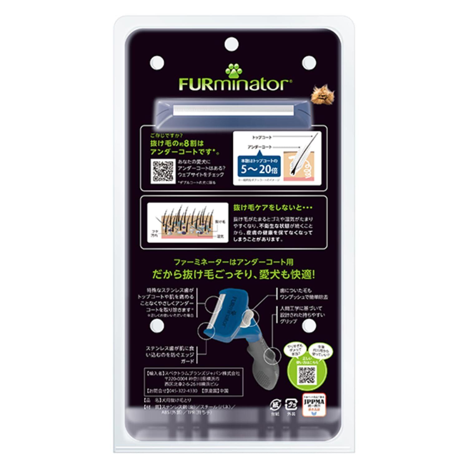 アンダーコート除去の画期的なアイテム! ファーミネーターなら抜け毛を最大90%取り除きます。技術取得済みのステンレススチール刃が、ワンちゃんの短いトップコートの下にあるアンダーコートと抜け毛を安全に取り除きます。ワンプッシュボタンで取り除いたムダ毛をラクラクポイ! 片手で操作できます。人間工学に基づいた持ち手で、握り心地がよく、使いやすさ抜群。抜け毛が減る! お掃除が楽になる! 何よりワンちゃんが快適に過ごせます。毛の長さが5cmまでのワンちゃんに最適。