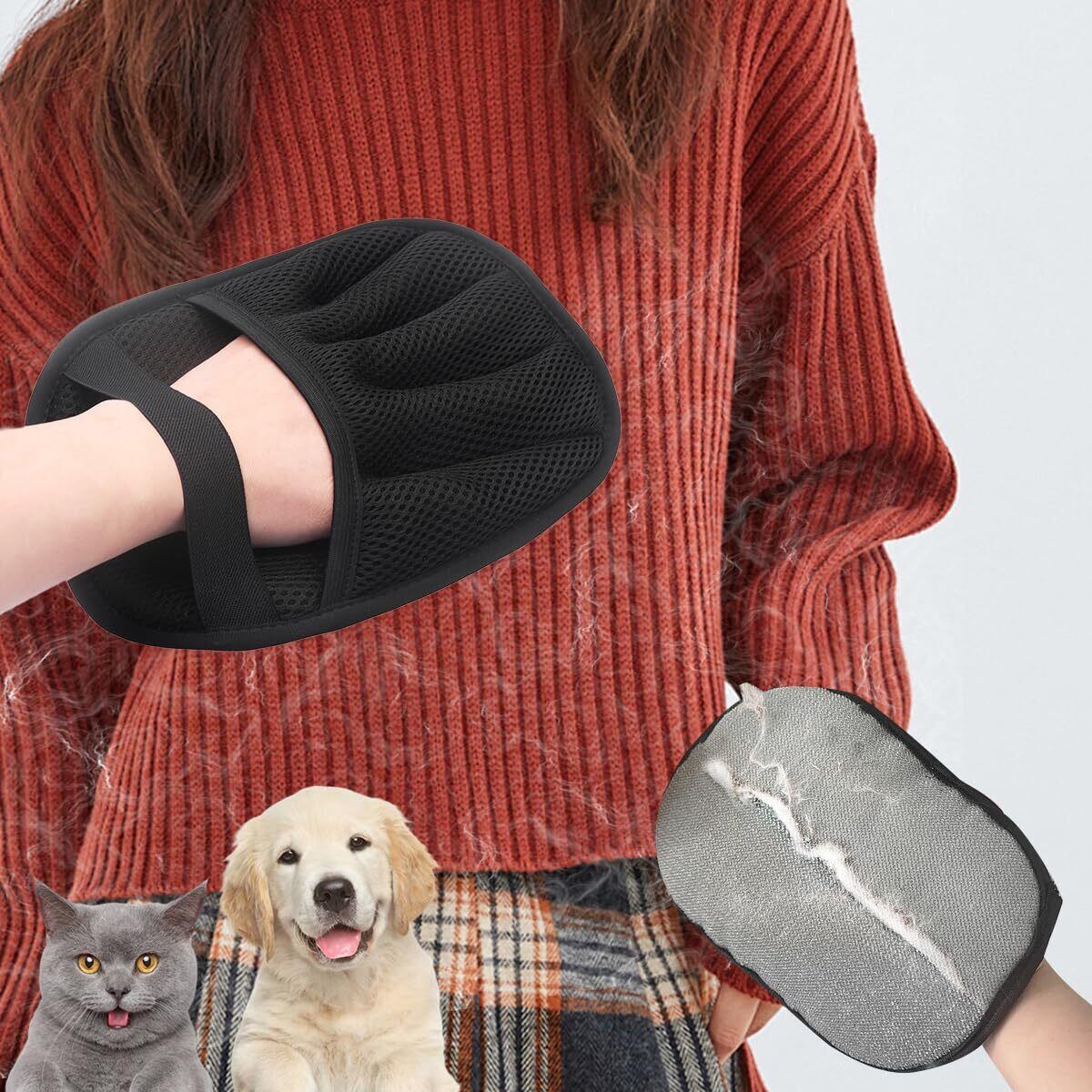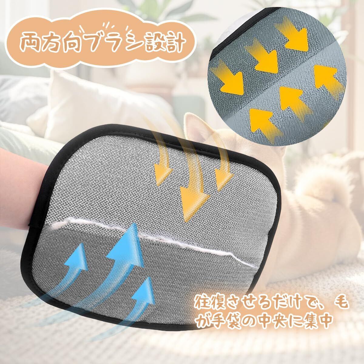 猫の毛除去手袋 2個入り 静電気ペット抜け毛グローブ ペット用静電気除去手袋 五指設計+固定ベルト 除毛ブラシ 猫 犬 ウサギ対応 家具/カーペット/布団用 両面使用可能 ソフト素材 グルーミング手袋 もつれ防止 (2個セット)