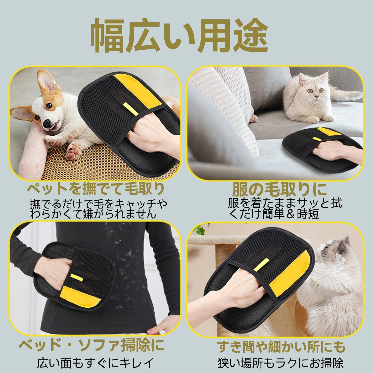 猫の毛取り 手袋【2025改良型】ペット犬猫グルーミンググローブ ペットグローブ 静電気除毛手袋 猫毛取りグローブ、猫の毛取り、犬、猫、ウサギ ペットの毛抜け手袋、猫、犬、ウサギ、小動物用のらくらく抜け毛グローブ