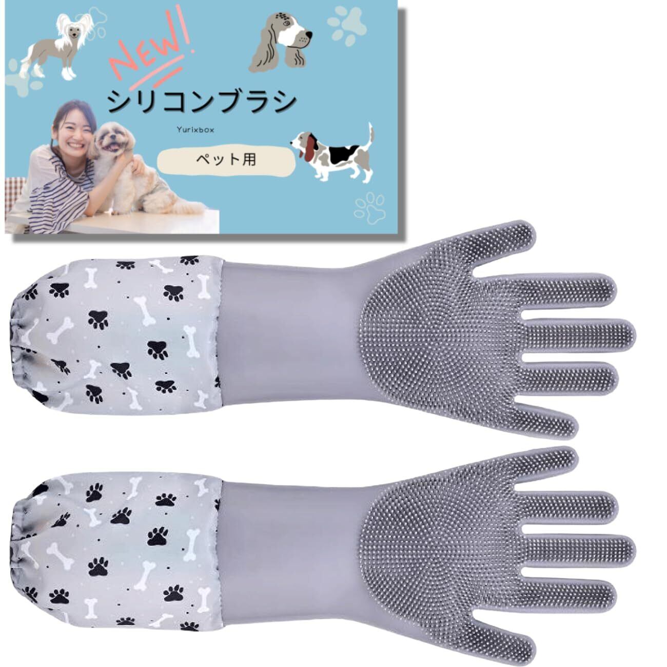 [Yurixbox] 犬 お風呂 シャンプー 泡立て器 ブラシ グルーミンググローブ 猫用 (グレー)