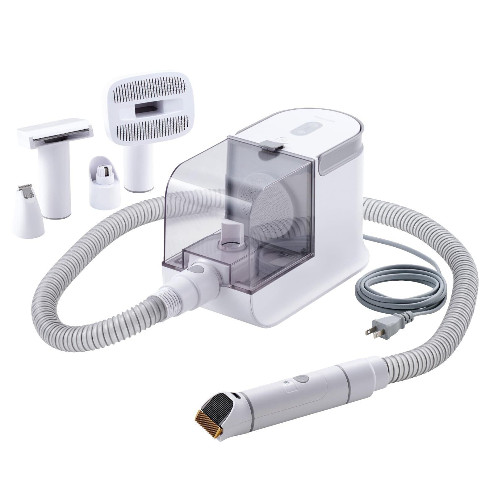 テスコム グルーミング掃除機 1.5L 吸引力3段階 5in1 [バリカン 大小/ブラシ2種/爪とぎ] 多機能ペット掃除機 犬 猫 換毛期対策 給電式 ホワイト PET-TK03WH