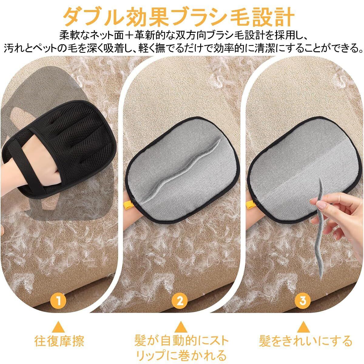 DONGFANGB 猫の毛除去手袋 2025改良型 抜け毛グローブ ペット 用静電気除去手袋 五指設計+固定ベルト 両面使用可能 グルーミング手袋 もつれ防止 猫 犬 ウサギ対応 家具 カーペット 布団 掃除用 (1個入り)