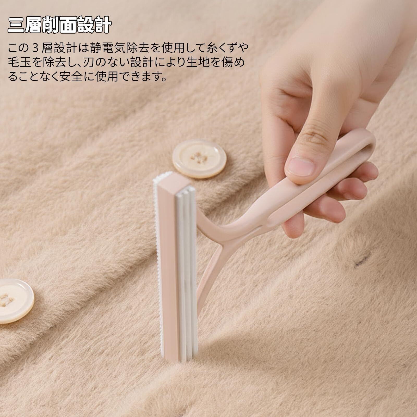 【製品特性】:静電気で毛玉を除去する3層設計により、刃を使用せず安全に毛玉ケアが可能。お気に入りの服も布地を傷つけず、さっと撫でるだけで新品のようにリフレッシュできます。従来の電動毛玉取り器よりも安心して使用できます。