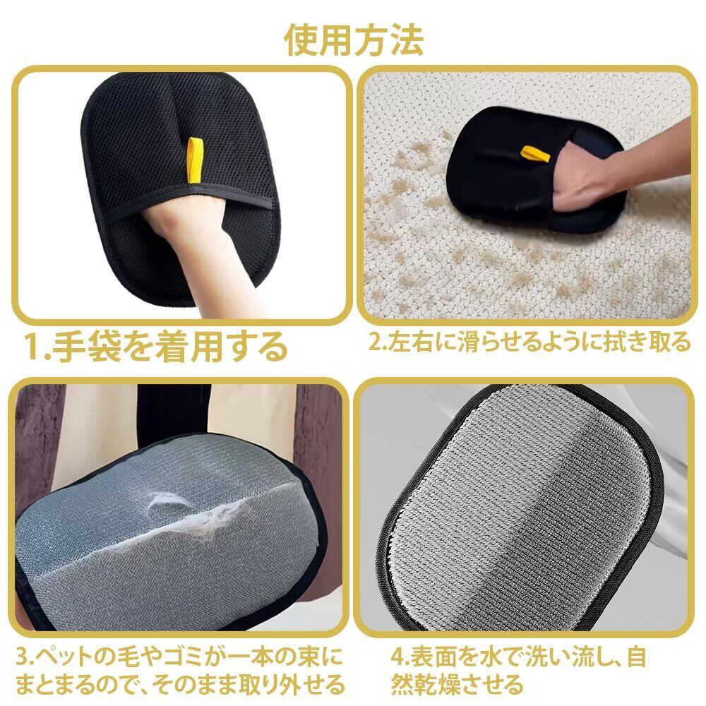 ペット用静電気脱毛グローブ 2個 らくらく抜け毛グローブ 犬 毛取り手袋 猫の毛除去手袋 除毛ブラシ ペット犬猫グルーミンググローブ ペットグローブ 洗濯可能 再利用可能 小動物用のらくらく抜け毛グローブ ブラック