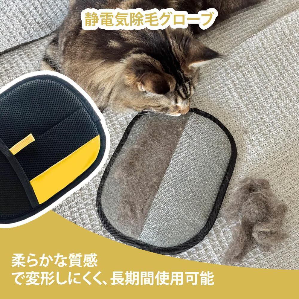 【高品質な素材】猫の毛除去手袋、高品質の高効率静電除毛生地で作られており、柔らかく変形しにくいため、長時間のお掃除でも手が疲れません。ペットに快適なブラッシング体験をもたらします。