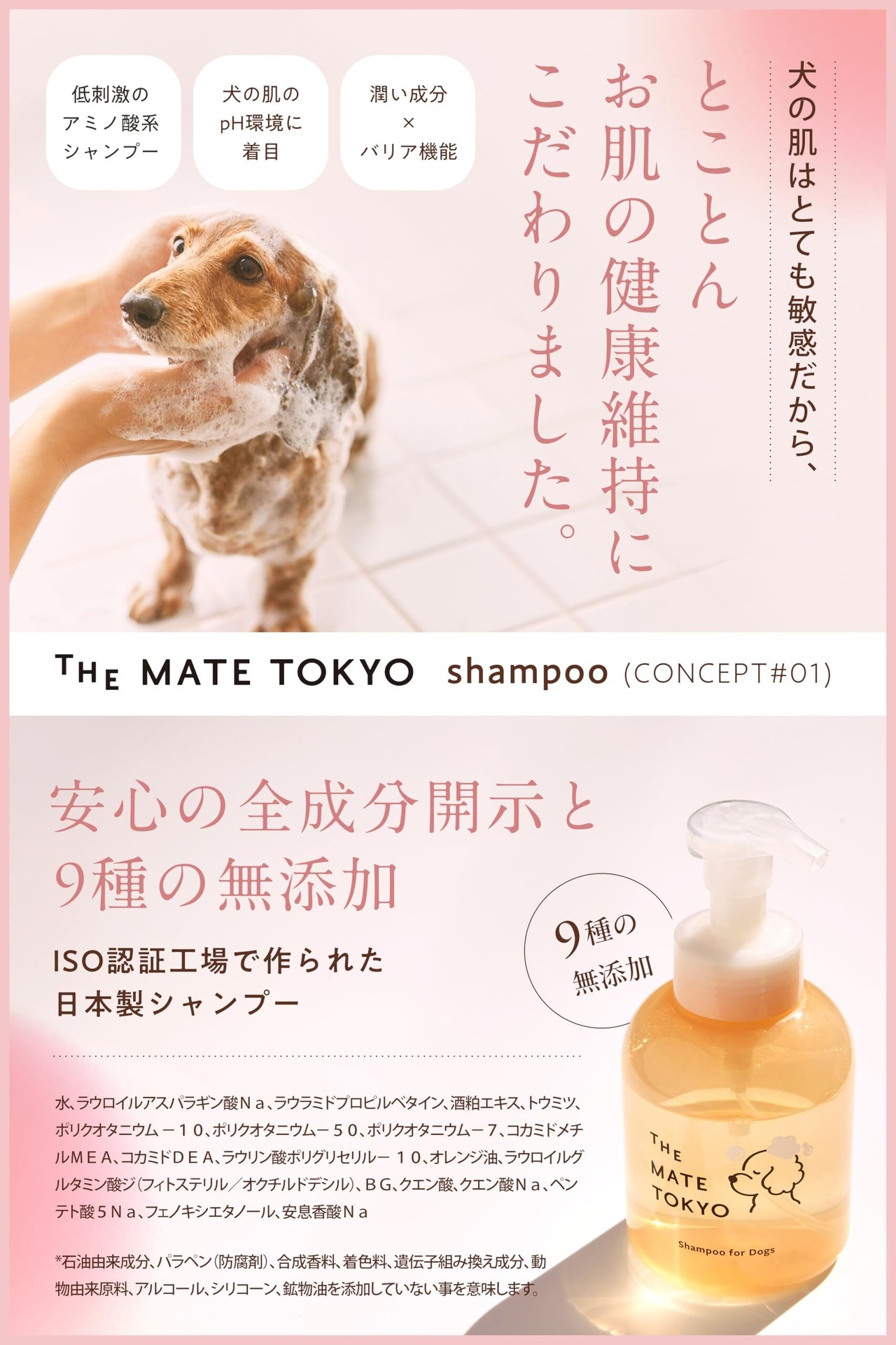 [獣医師・トリマー監修] [泡で出る× 無添加 ] 犬 シャンプー 犬用 低刺激 日本製 大容量 460ml THE MATE TOKYO (シャンプー1個)