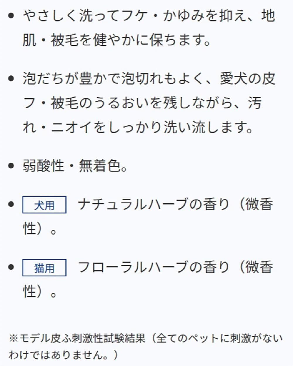 洗浄成分の100%が植物生まれ。泡立ちが豊かで泡切れもよく、デリケートな愛犬の皮ふ・被毛をいたわりながら、汚れ・ニオイをしっかり洗い流します。リンゴの蜜にも含まれるうるおい成分「ソルビット」配合。ふんわりなめらかに仕上げます。弱酸性・無着色。ナチュラルハーブの香り(微香性)。※泡タイプへの詰替え間違いを防止するパッケージデザインに変更となります。
