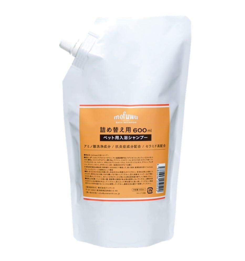 【つかるだけで洗浄&保湿】入浴シャンプー 詰替用 犬猫兼用 お風呂で簡単ケア 無添加 無香料 低刺激 炭酸なし 国産 mofuwa モフワ もふわ モフア (600ml詰め替え用)