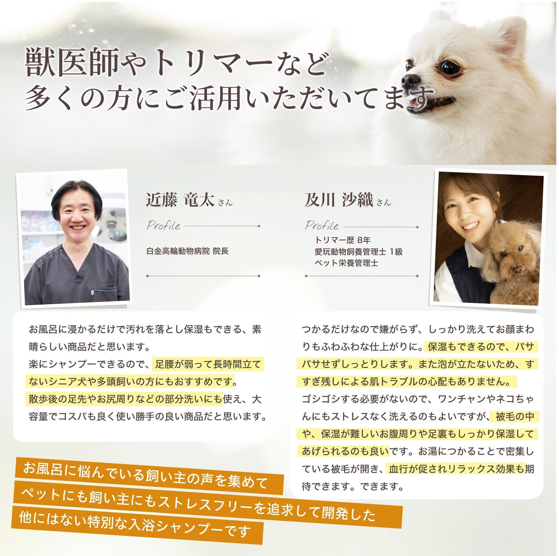 【時短×低刺激で、毎日でも使える入浴ケア】通常のペット用シャンプーでは負担の大きい「泡立て」や「何度もすすぐ」工程が不要になることで、短時間で全身ケアが完了。敏感肌・乾燥肌の子にもやさしい設計です。