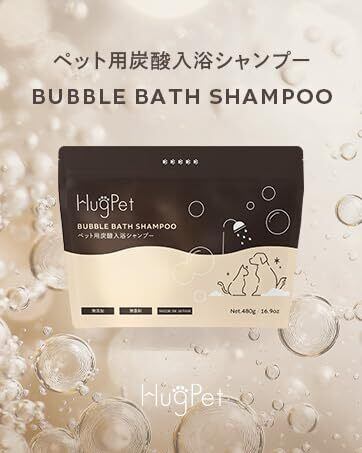 HugPet【獣医師監修】犬の入浴剤 ペット用炭酸入浴シャンプー BUBBLE BATH SHAMPOO 犬 猫用シャンプー 入浴剤 お風呂 ペットバス 保湿 無添加 国産 日本製 ハグペット (480g)