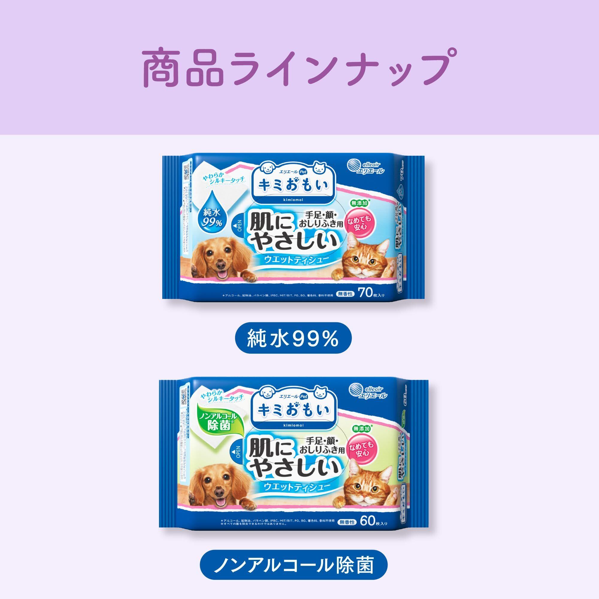 エリエールPet キミおもい 肌にやさしいウェットティシュー ノンアルコール除菌 60枚×3個パック