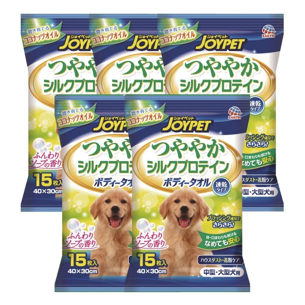 JOYPET(ジョイペット) ボディータオル 中型・大型犬用 15枚入×5個 (まとめ買い)