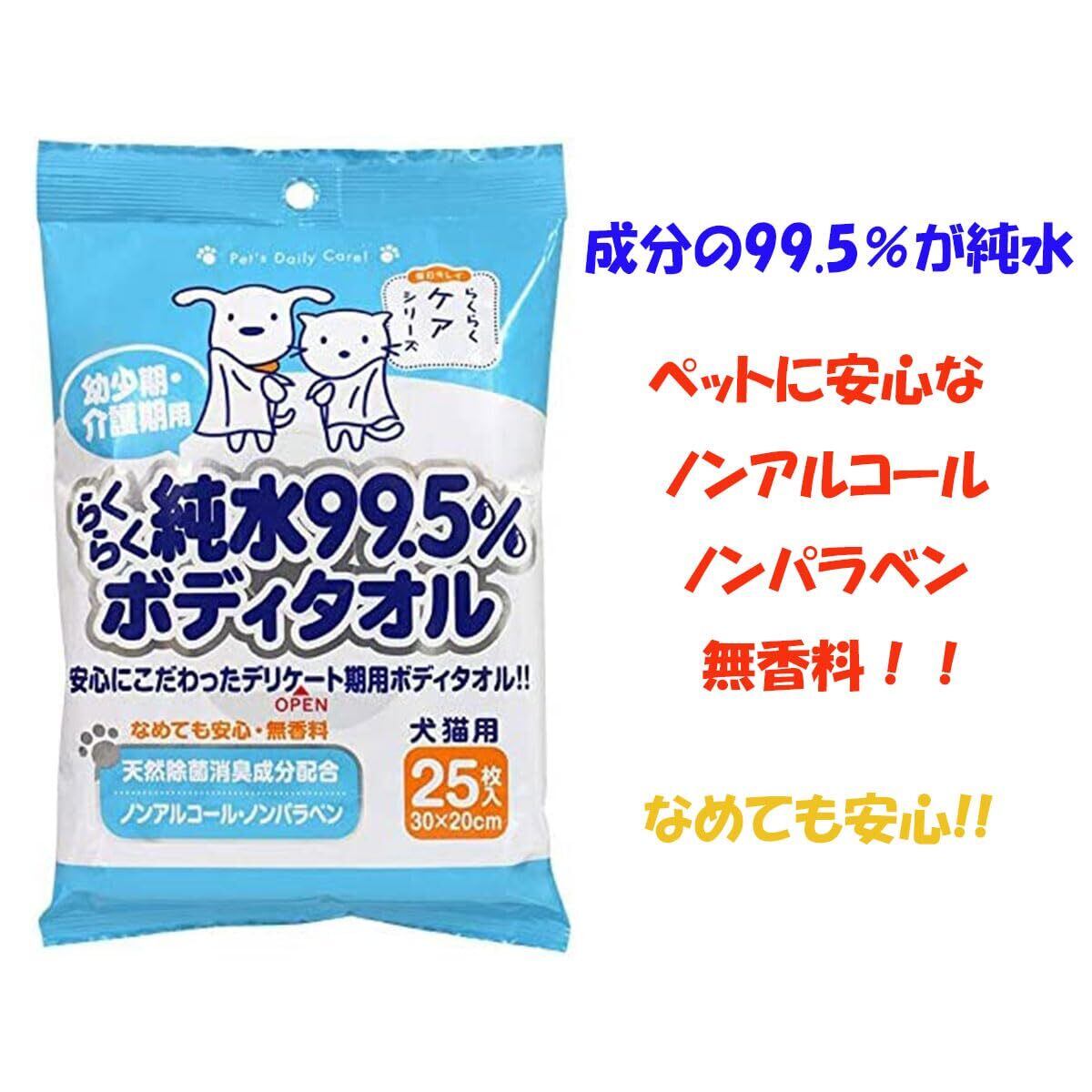 らくらく純水99.5%ボディタオル 25枚入 ×3袋セット 犬 猫 除菌 消臭 +ムサシノ商店健診日シール