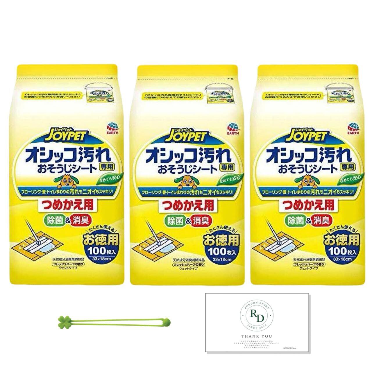 アースペット JOYPET(ジョイペット) オシッコ汚れ専用 おそうじシート ペット用 つめかえ用 【3個パック】愛犬愛猫用 犬 100枚×3個 お徳用 開封口止め用シリコン輪ゴム&オリジナルメッセージカード付き
