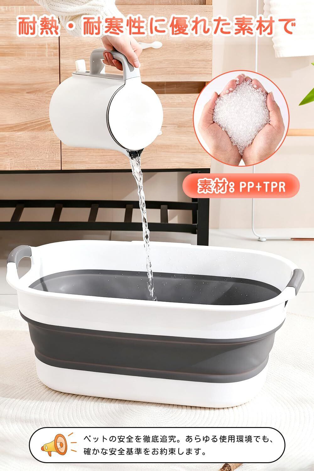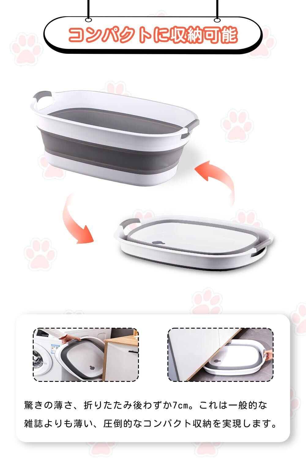 【軽量かつ多用途な耐久設計】本体重量は約0.88kgと軽量ながら、高品質なPP素材を使用し耐久性に優れています。ペットバスとしてだけでなく、洗濯物の浸け置きや、大きな野菜の洗い桶など、家庭のあらゆるシーンで活躍します。