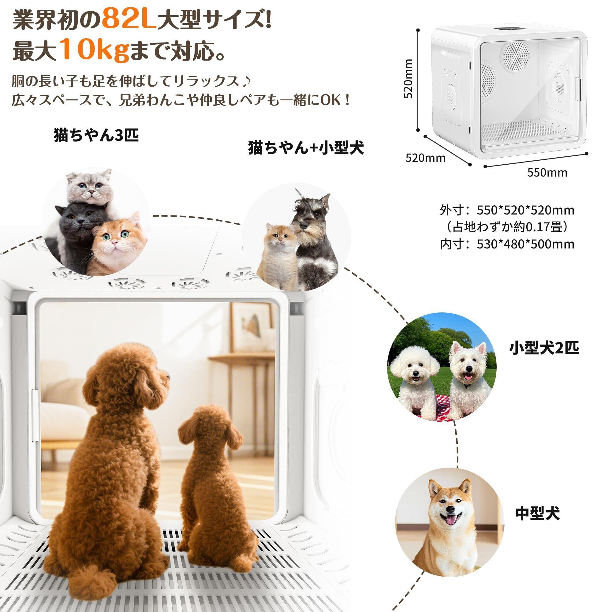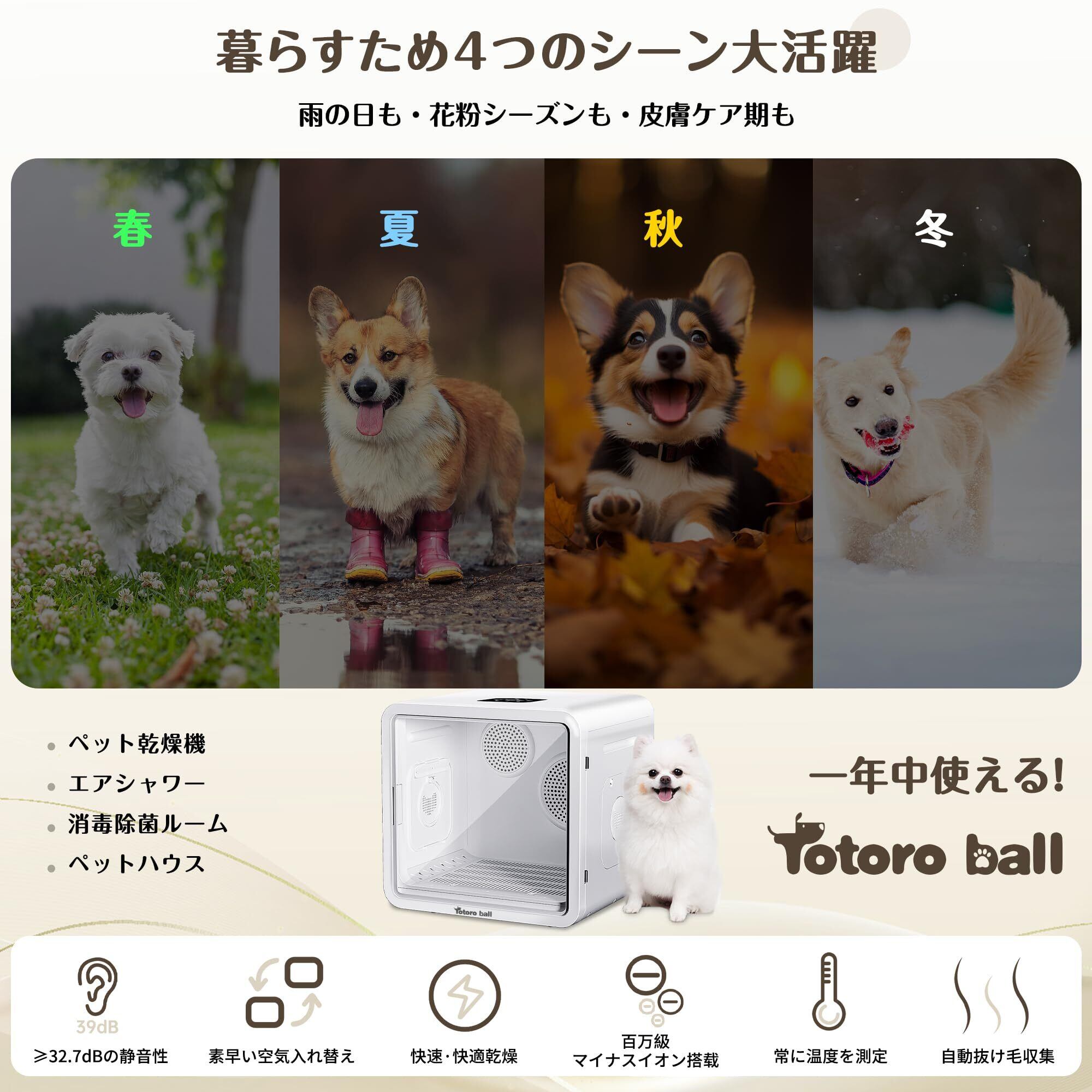 [業界初82L大容量]Totoro ball ペットドライルーム ペットドライヤーボックス 小型犬 猫用 ドライルーム 乾燥機 ボックス ドライヤーハウス 360°全方位送風 多頭用 過熱保護 温度/風量デジタル調節 花粉 犬 猫 エアシャワー対応 お風呂後 自動速乾 33dB静音性