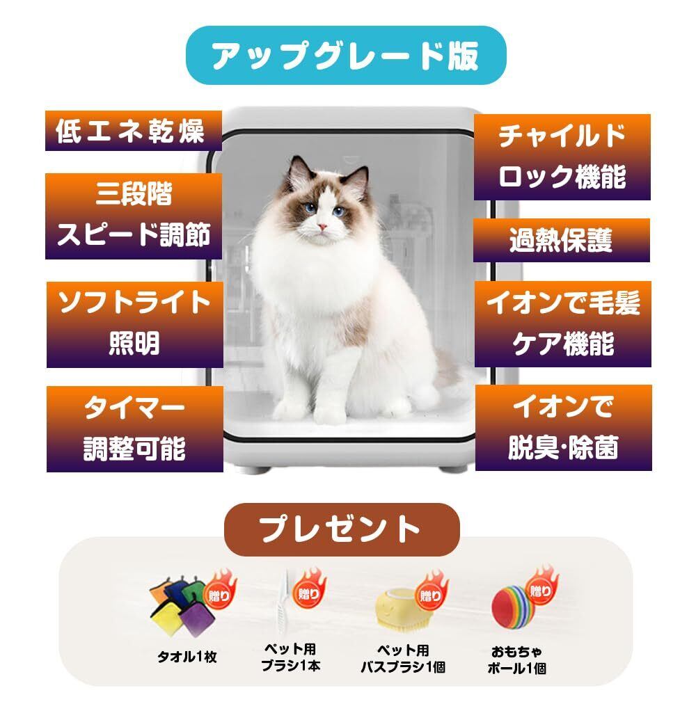 VERILADY ペットドライヤー ペット乾燥機 ドライヤーハウス 猫 ドライヤー ペットドライルーム 犬 猫乾燥機 ペットドライヤーボックス 静音 風速調整 温度調節 多頭飼 快適 PSE取得 乾燥/花粉/消毒対応 62L