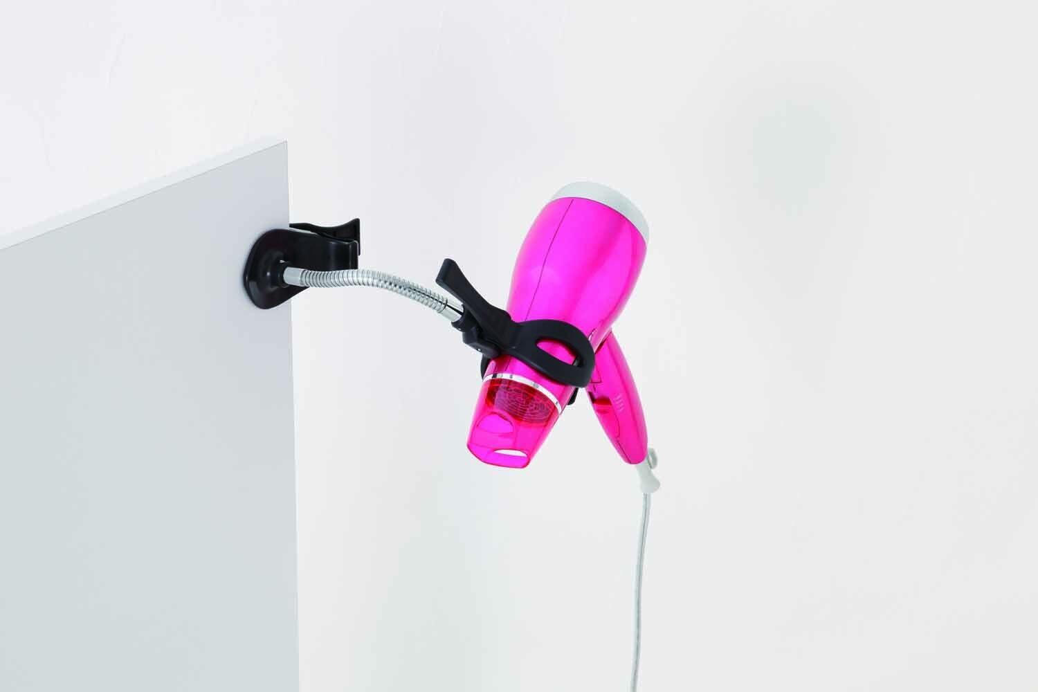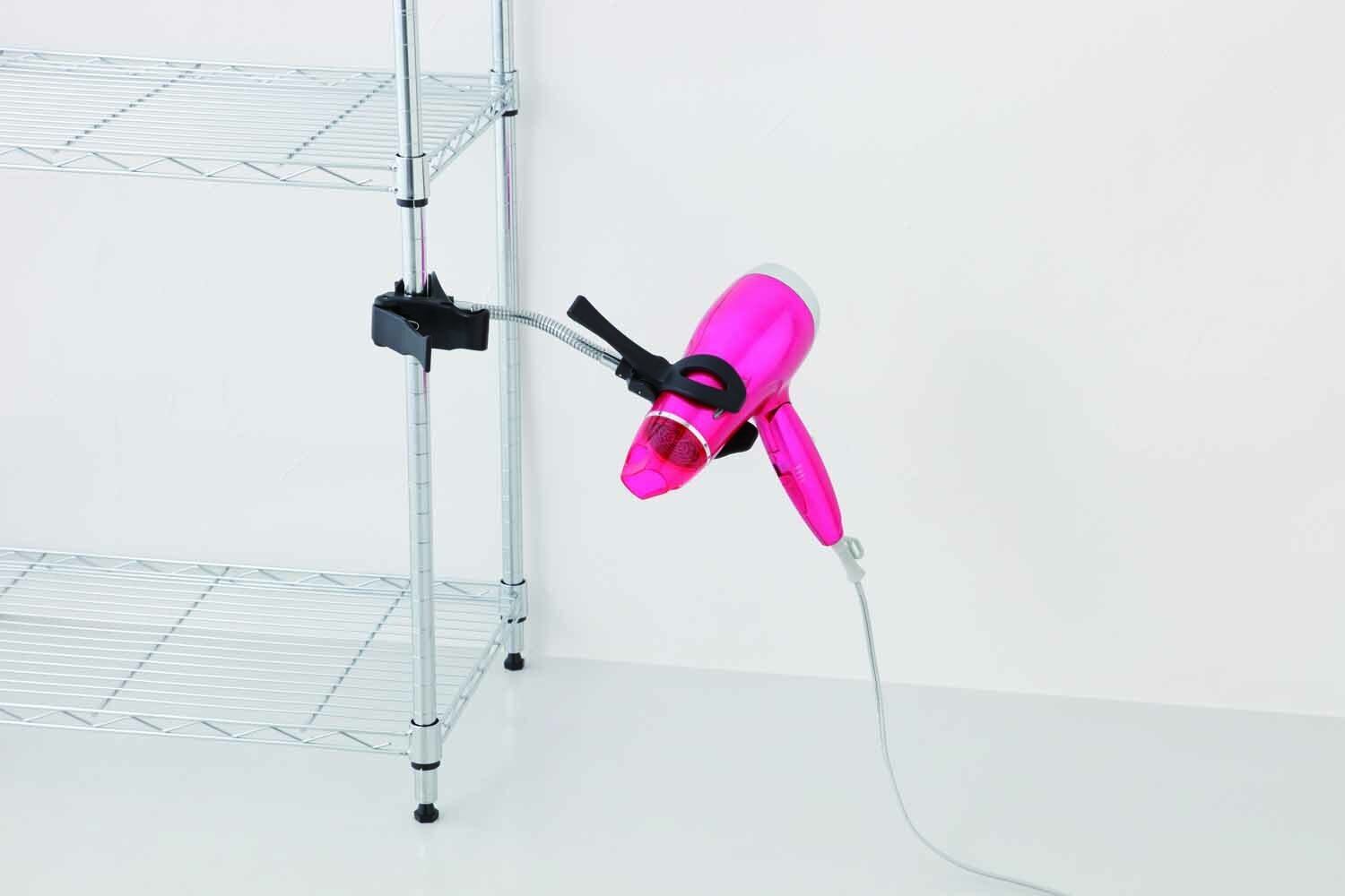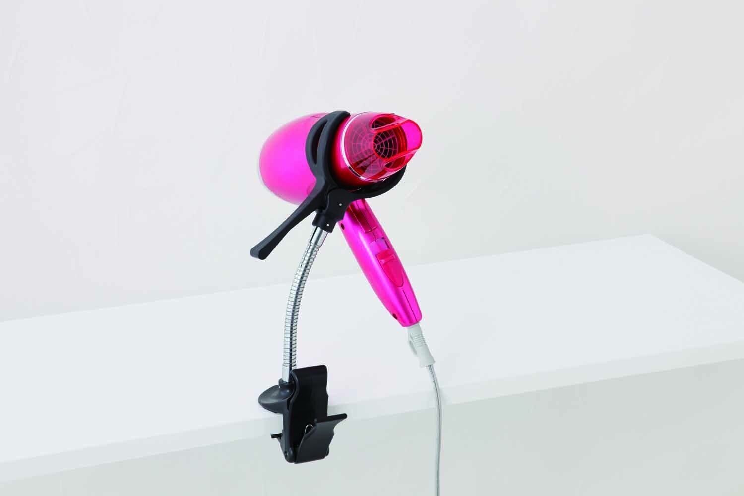 ●ドライヤー本体を挟んで固定、両手でブローできます。向きもお好みの向きに調整できます。 ●板、ポールに設置できるので、洗面台下やタオル収納などさまざまな箇所に設置可能です。 ●800g以下のドライヤーでご使用ください。