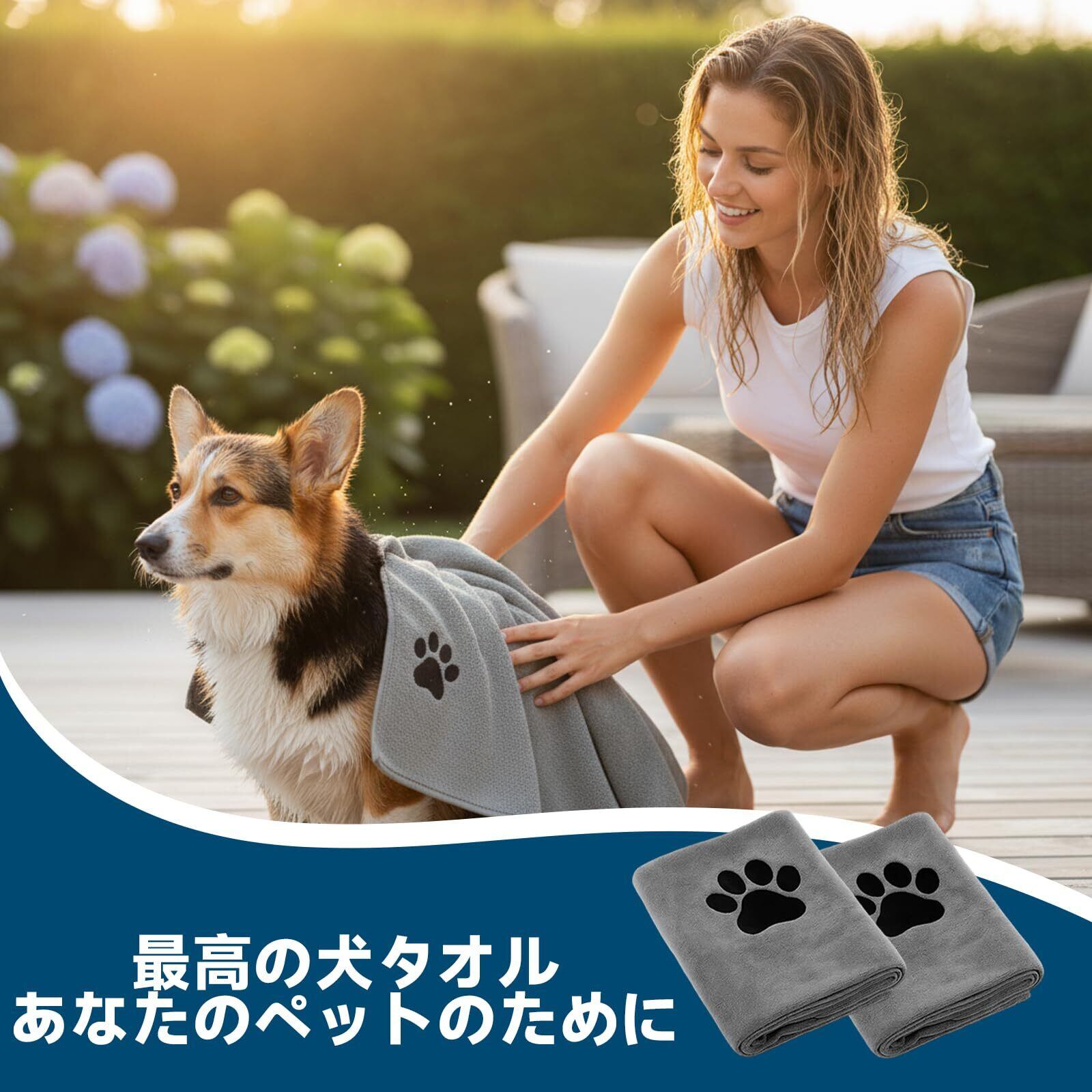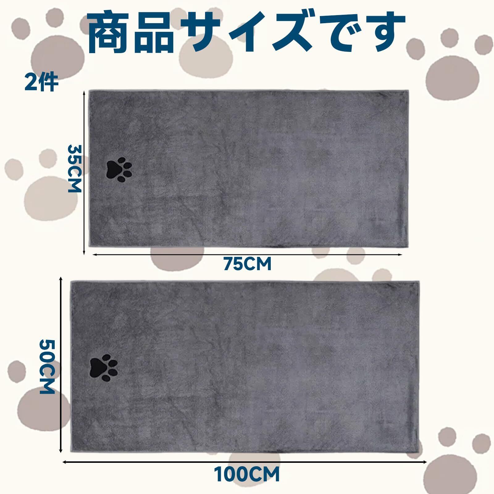 ペット用品: 2枚セットの犬 タオルは、50×100cmと35×75cmの2サイズで、様々な犬種に対応; 吸水タオルとしての機能性に加え、柔らかい素材でペットの肌に優しい設計です