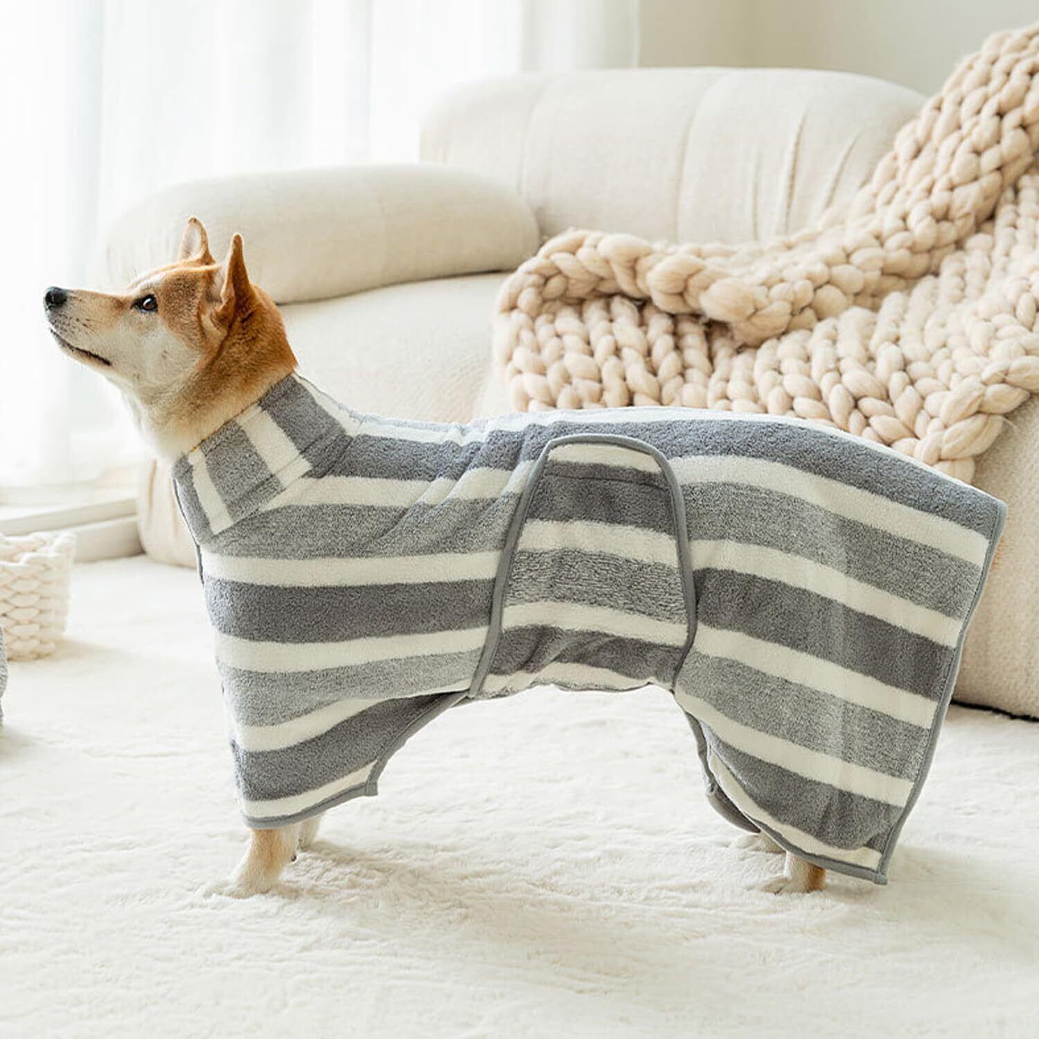 素材:マイクロファイバーです。ペットの入浴後も乾いた状態に保ち、秋と冬、寒い天候でも暖かく保ちます。柔らかく、快適で通気性があります。