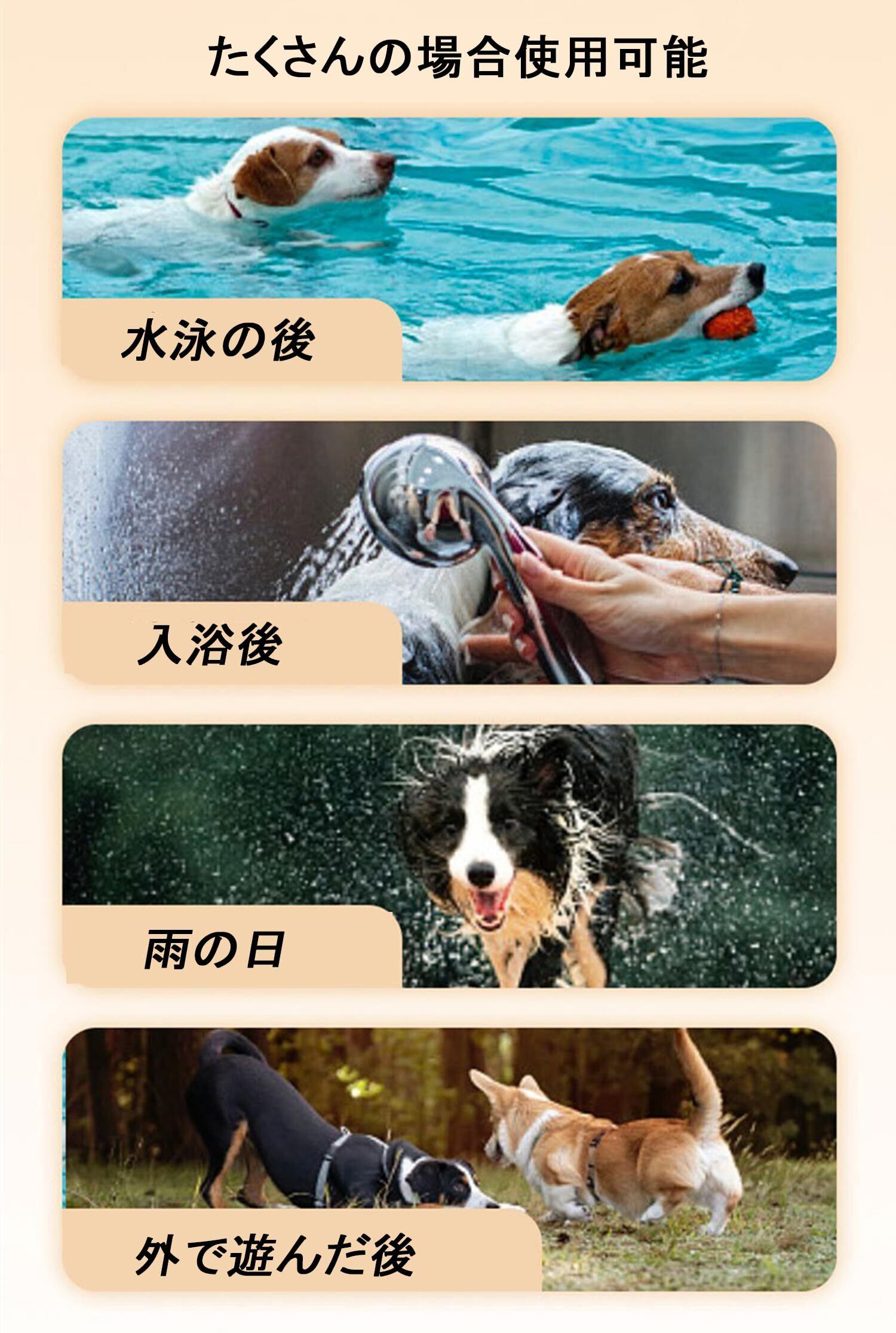 【場合】入浴後、お風呂、水泳、雨の中を歩くこと、出かけなどに適用しています。寒い冬のに最適です。ペットを暖かく快適に保ち、病気を避けます。日常使いに適しており、屋外でも室内でもOKです。