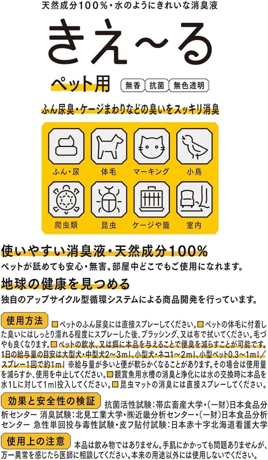 【本体&詰め替えセット】環境大善 天然成分 ペットにも安心安全の消臭液 きえ〜る ペット用 バイオ消臭液 無香 スプレータイプ 280ml・詰め替え500ml