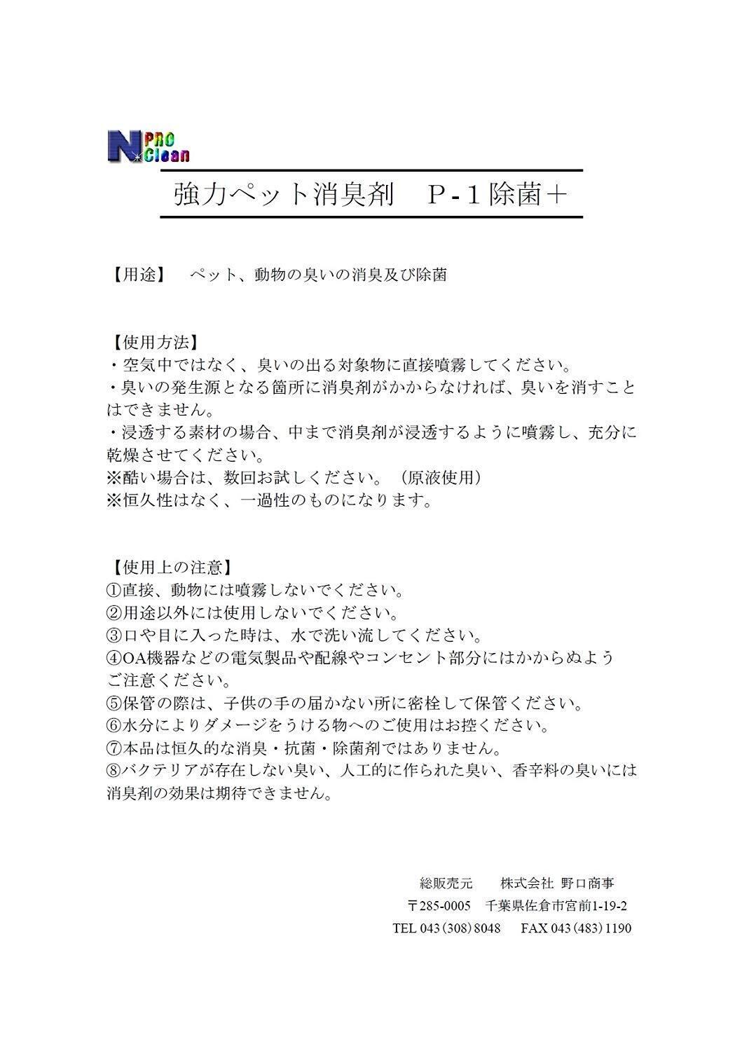 【劇的に消える!】野口商事 強力パワー 消臭剤【ペット用 P-1 ボトル】ペット臭い、糞尿アンモニア臭の除去 無香料【消臭をあきらめないで!】1000ml