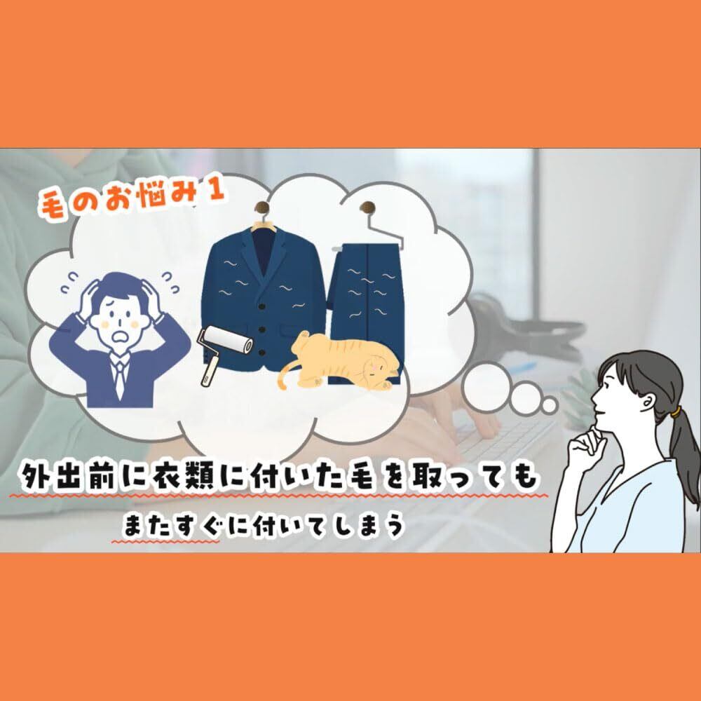 満遍なく湿らす程度にスプレーを噴霧。毛が付着した箇所にも同様にスプレーを噴霧し乾燥後に粘着ローラーなどで毛を取り除く。