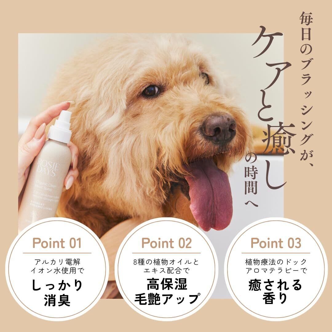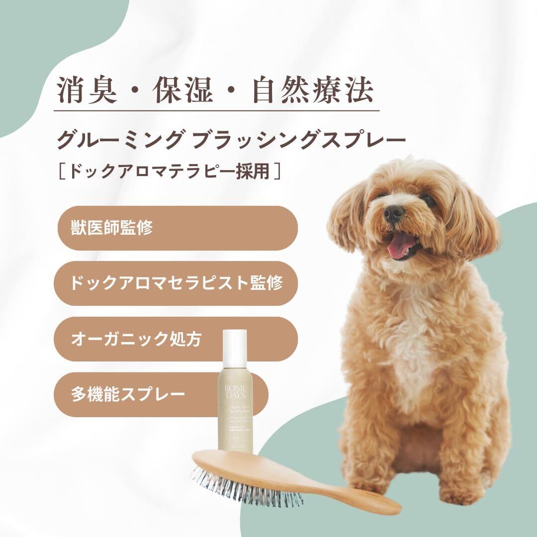 ROSIE DAYS オーガニックブラッシングアロマスプレー 獣医師監修 犬 ブラッシングスプレー オーガニック グルーミングスプレー ブラッシング 天然成分 消臭 ペットアロマテラピー 毛玉防止 ふんわり仕上げ (HERB GARDEN)