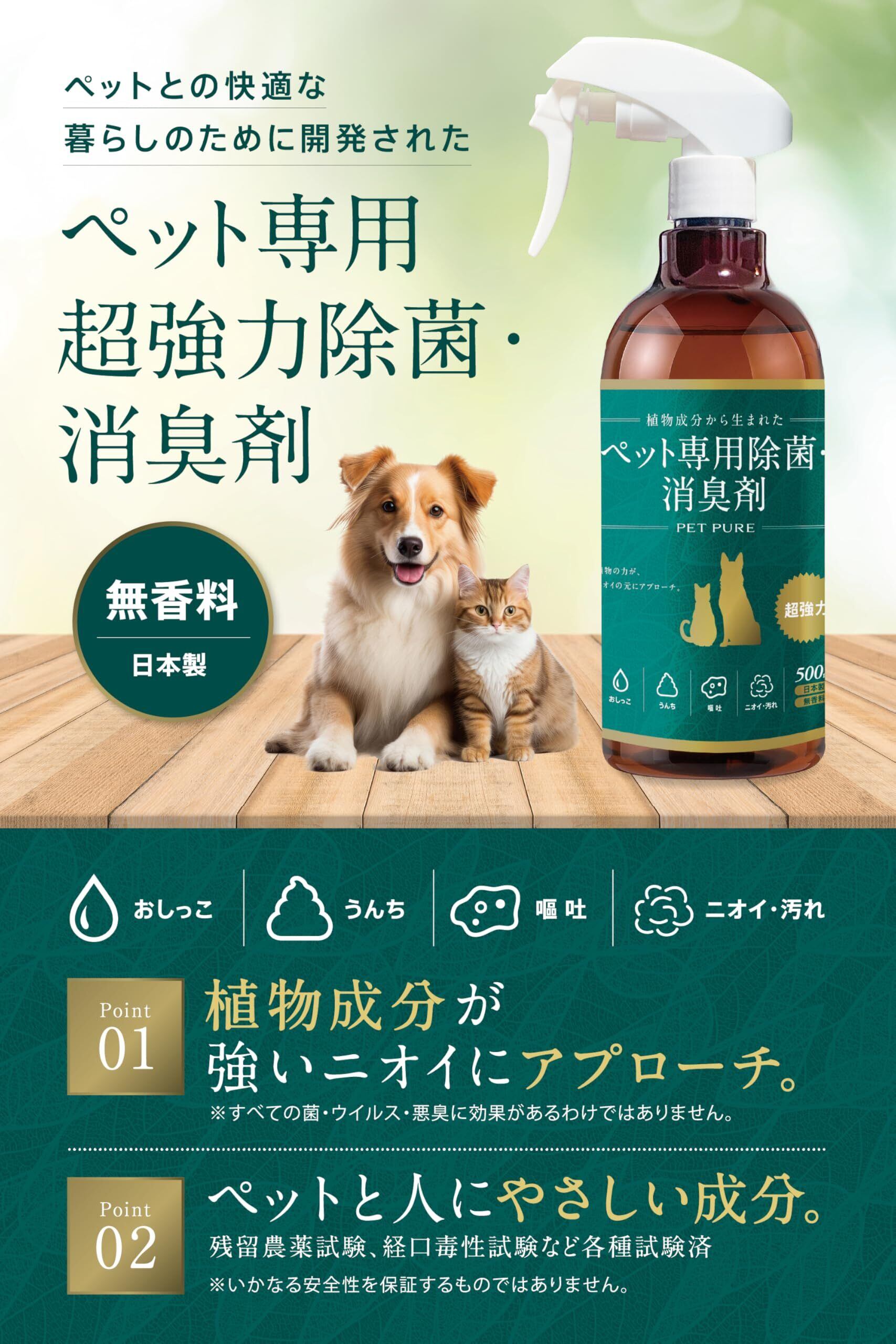 【植物成分100%なのに超強力】ペット用 超強力消臭剤 消臭スプレー 犬用 猫用 除菌 天然成分100% 無香料 無添加 日本製 たっぷり500ml (スプレータイプ 500ml) | AKIショップ