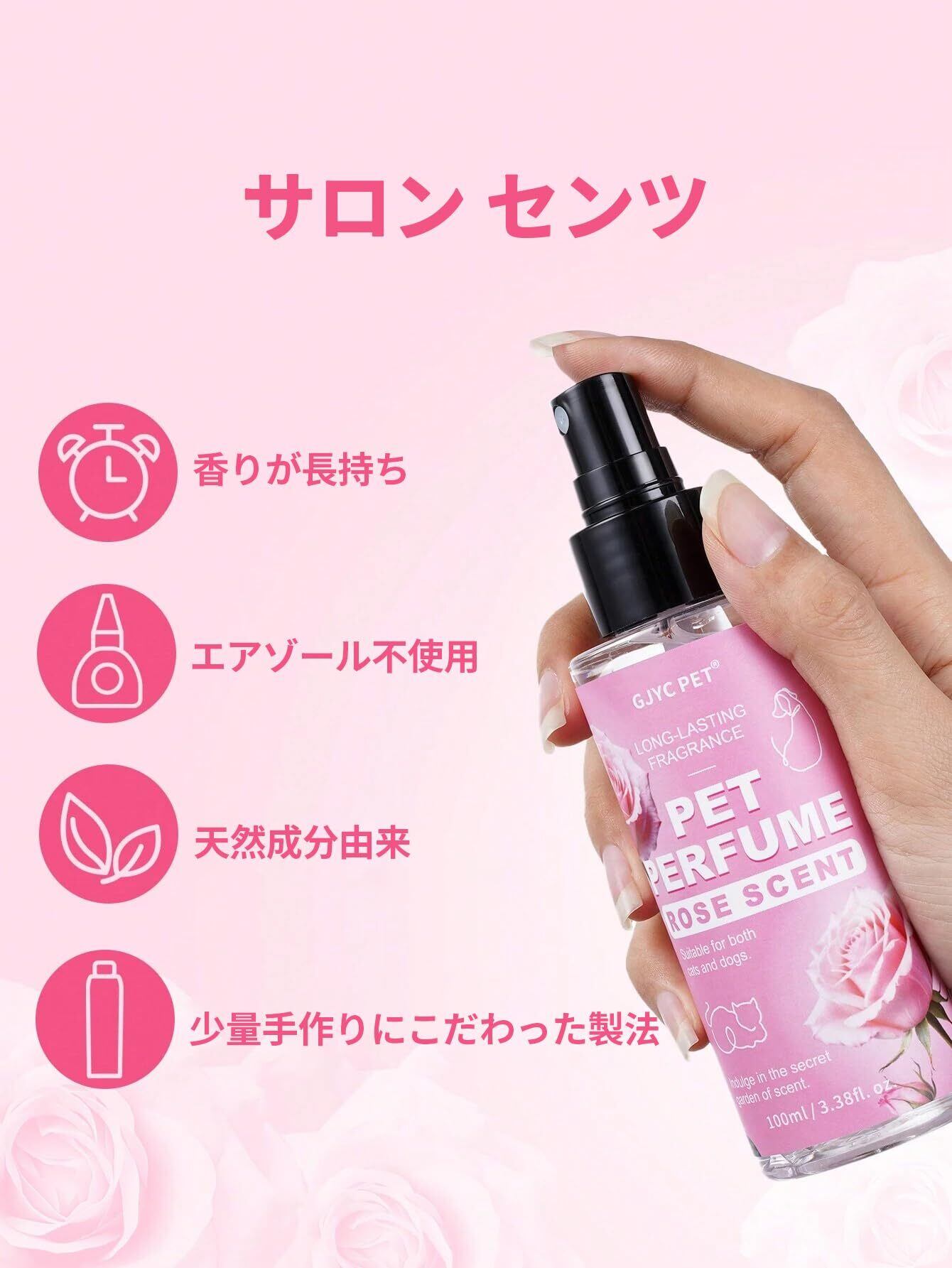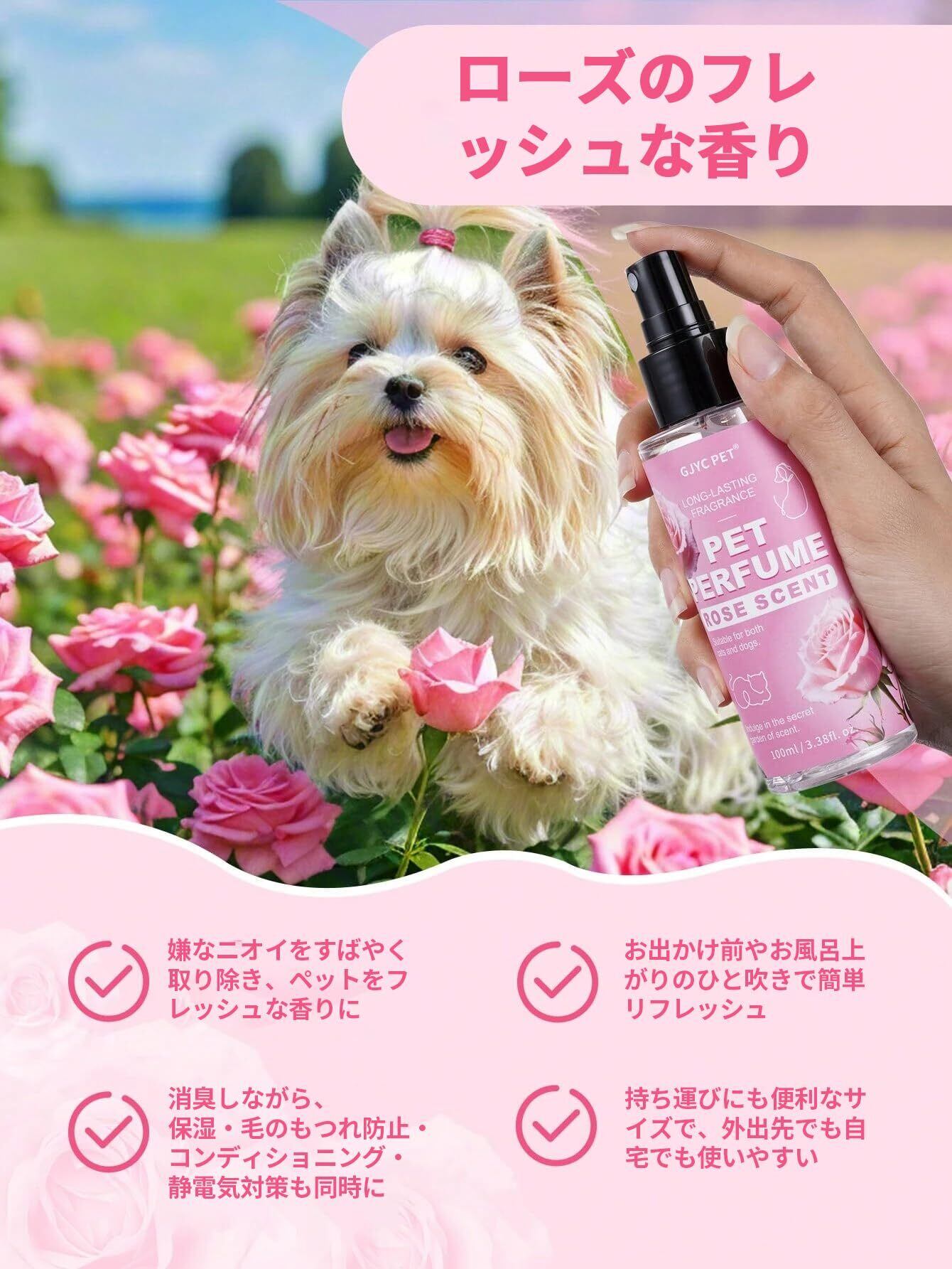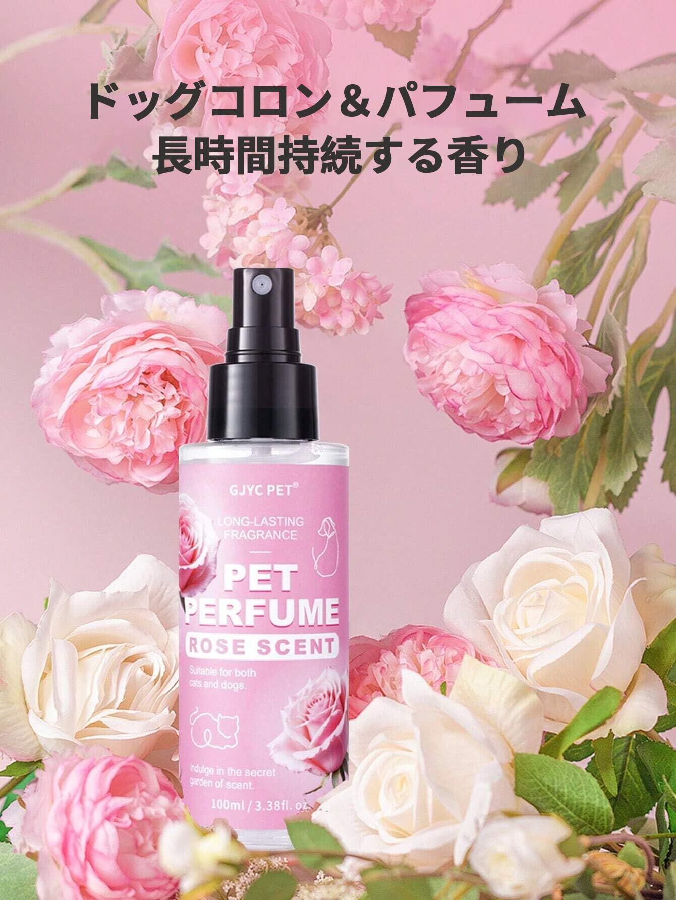 GJYC PET ペット用コロン - 犬用・猫用 消臭スプレー - 長時間持続する天然ローズの香り - グルーミングスプレー&消臭剤 100ml