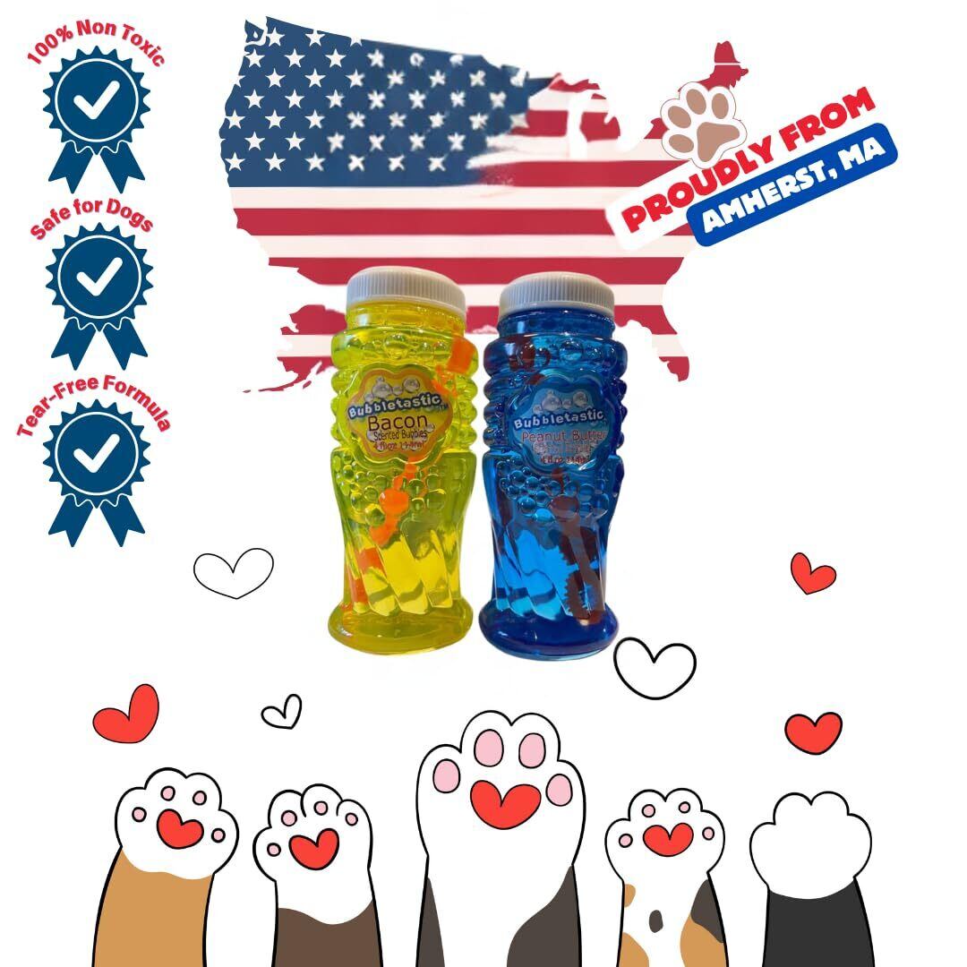 ベーコンとピーナッツバターの香り付きシャボン玉 犬用 - 各8オンスボトル1本! 100%非毒性、破れにくく、犬と子供に安全
