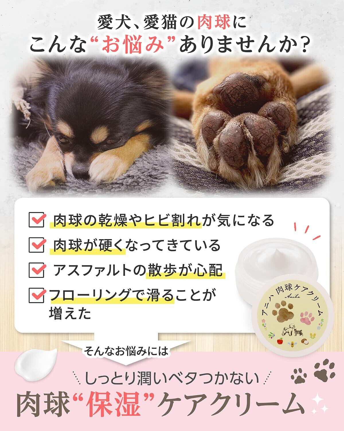 アニハ 犬猫用 “舐めてもOK” 肉球ケアクリーム【獣医師監修】ミツロウ・シアバター・植物オイル・コラーゲン配合 ベタつかない さっぱり保湿タイプ 30g