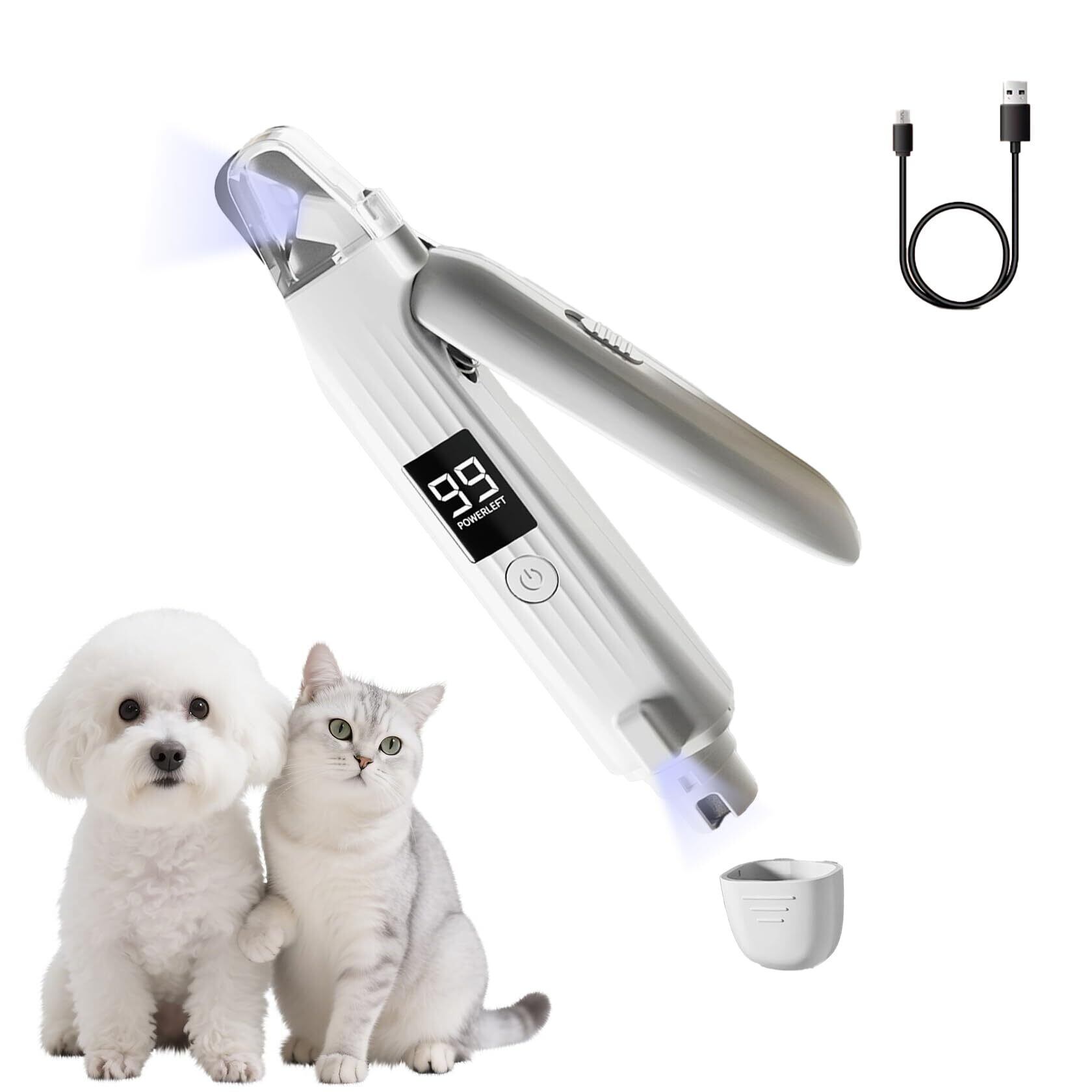 petstay 犬 爪切り 爪やすり 電動 2-IN-1 【LEDライト付きで血管が透けて見える】 初心者も安心 爪収納カバー 飛び散り防止 静音設計 安全ロック USB充電式 液晶画面表示 握りやすい コンパクト 一台二役 猫 爪切り ペット用電動爪トリマー ペット 爪研ぎ器 犬猫兼用 小中大型兼用 (ホワイト)