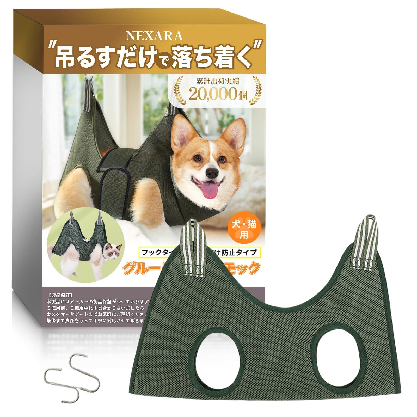 NEXARA 犬 ハンモック【簡単セルフケア】【選べる2タイプ】グルーミングハンモック 猫 つめきり 暴れない トリミング 便利グッズ 爪切り 歯磨き 耳掃除 足裏 暴れる 対策 メッシュ(抜け出し防止タイプXS)