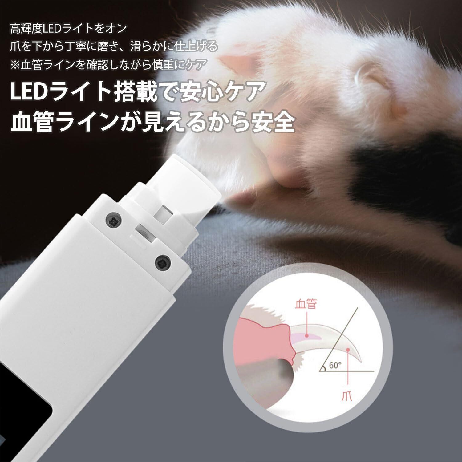 Flechazo 犬 爪切り 電動 4スピード 【LEDライト付き】 爪切り 犬 つめきり 電動 USB充電式 コードレス 低騒音 低振動 軽量 初心者向け ペット用 電動ネイルヤスリ 猫/小型犬/中型犬/大型犬対応 (White)