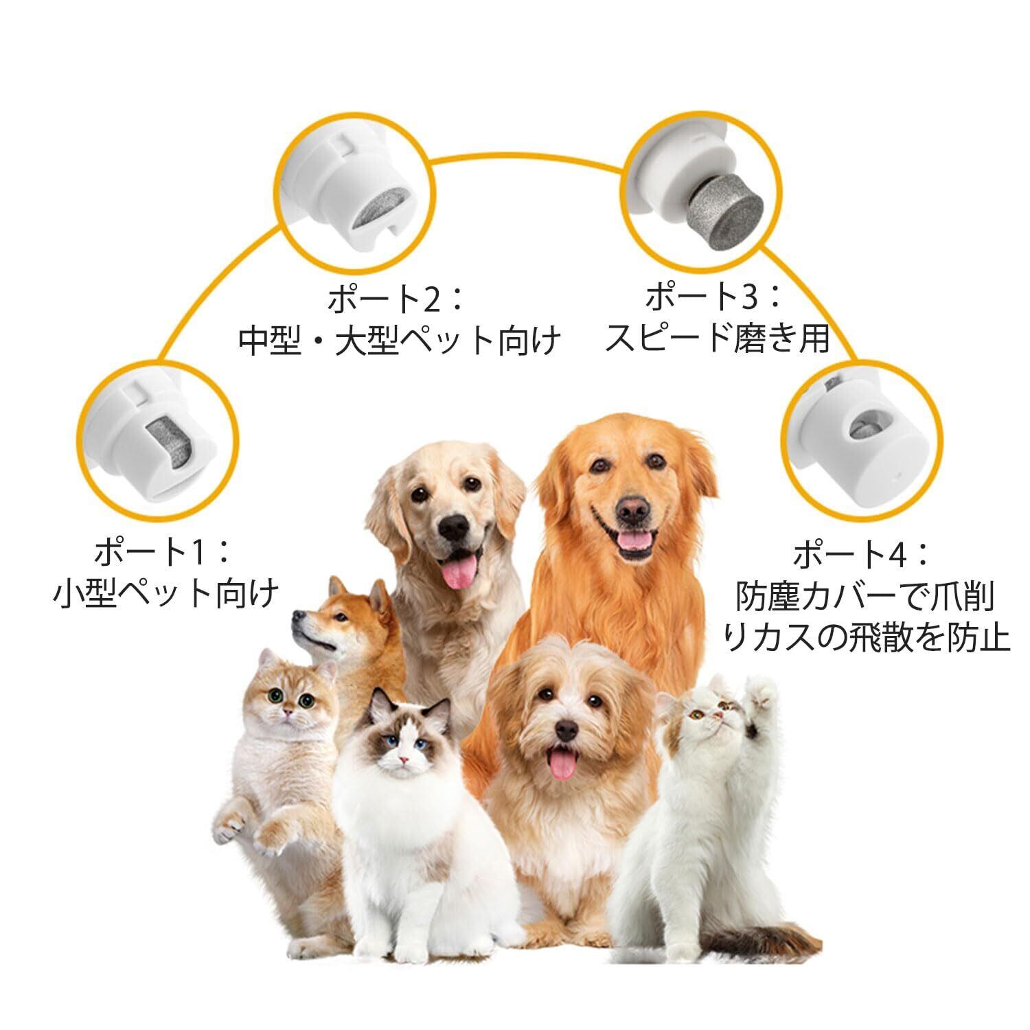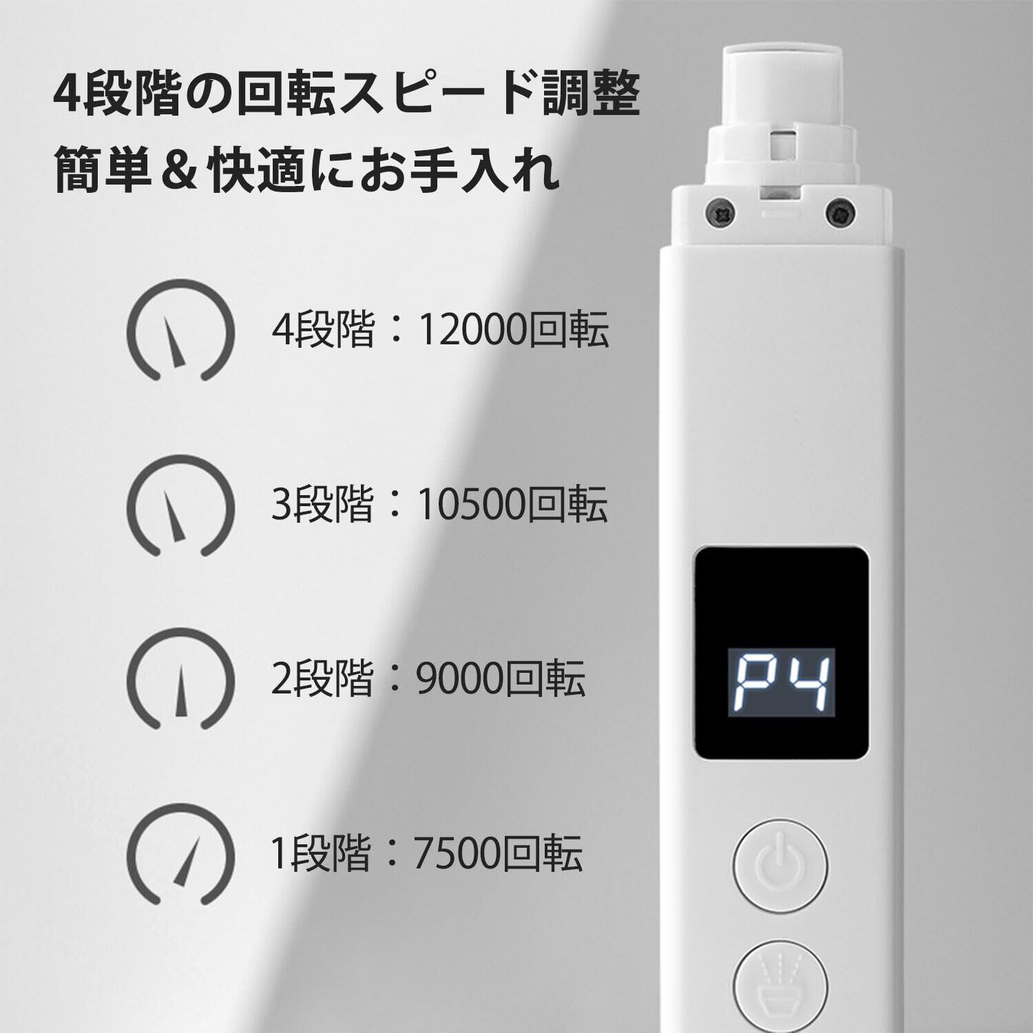 【耐久性の高い素材&4段階パワー調整】金剛石研磨ヘッドと真鍮シャフトを採用し、耐久性に優れた設計です。7500~12000回転の4段階パワー調整機能で、小型犬から大型犬、猫まで幅広いペットに対応。高速回転により、スムーズかつ短時間で爪を整えることができ、ペットの負担を軽減します。