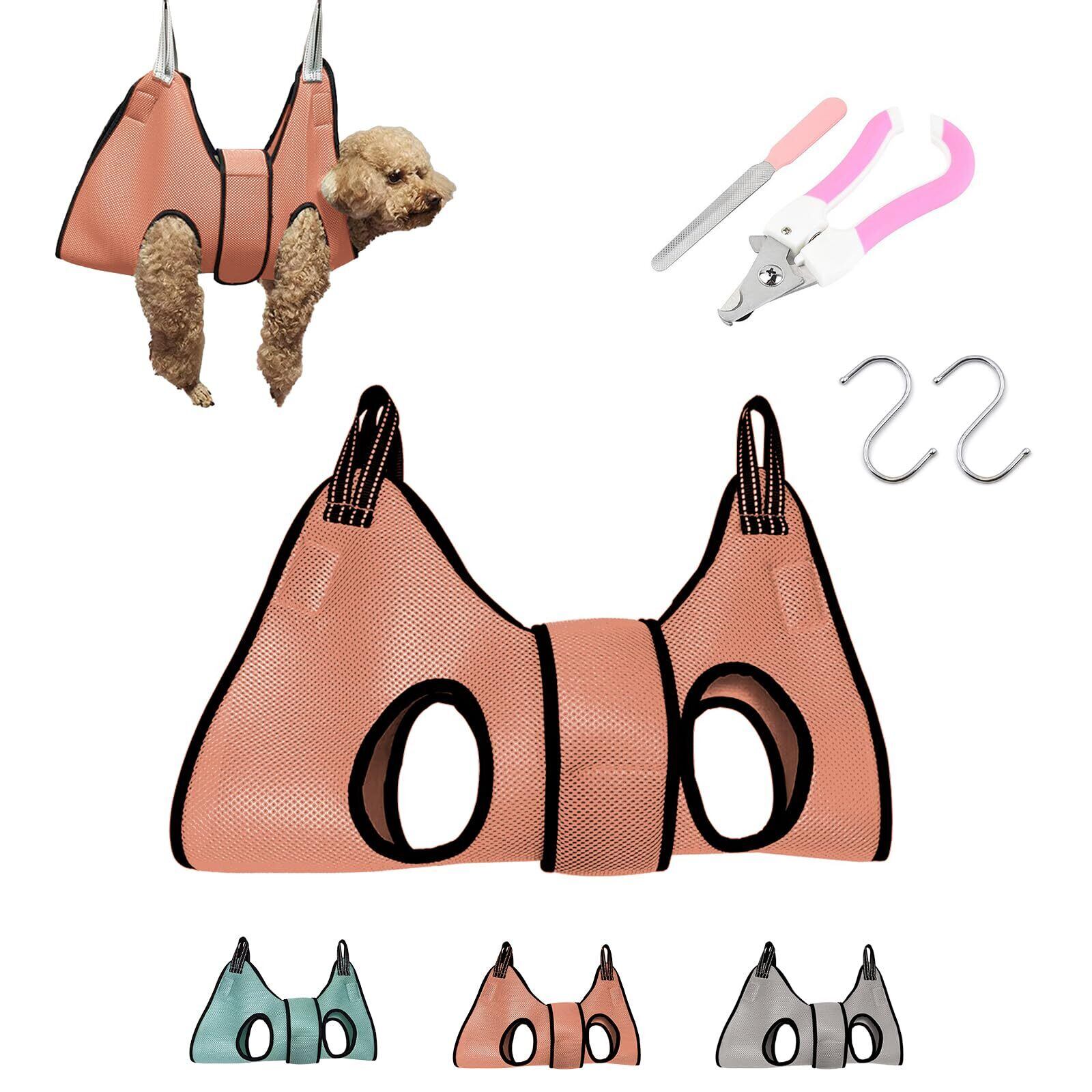 JnTech 犬 猫 トリミングハンモック グルーミング ハンモック 拘束带 爪切り 補助具 ペット用 ネイルのトリミング ハーネス ペット美容用 ネイルのトリミング ソフトクッション 通気性 介護犬 グルーミング (M, オレンジ)