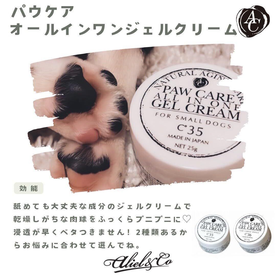 aliel&co ペット用 肉球ケア 舐めても安心 パウケアオールインワンジェルクリーム 25g クリーム ジェル 犬 猫 人気 無香料 無着色 日本製 (滑り止め・保湿) アリールアンドシー C35