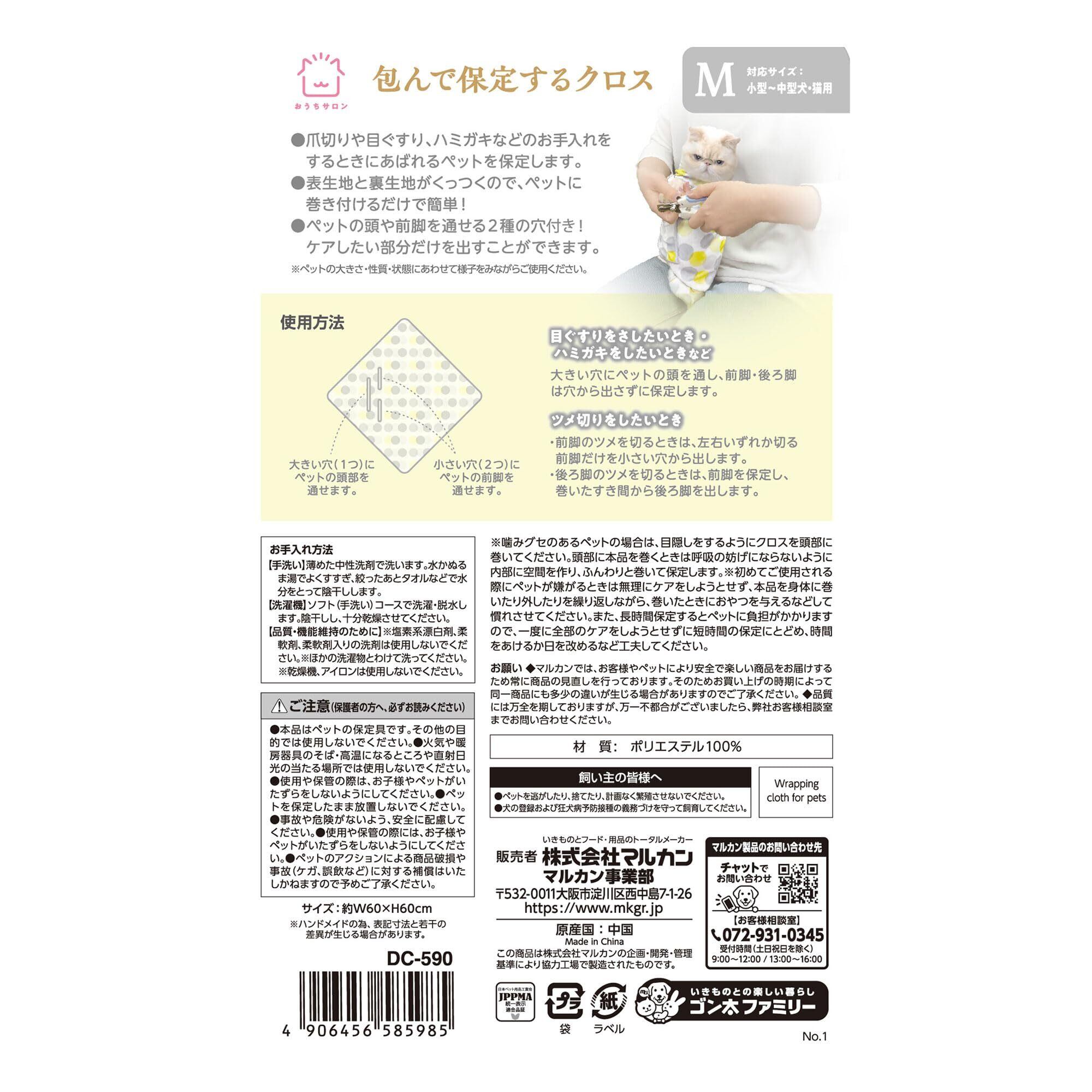 おうちサロン 包んで保定するクロス Mサイズ 小型犬 中型犬 猫用 爪切り 歯みがき 目薬ケア用 M サイズ