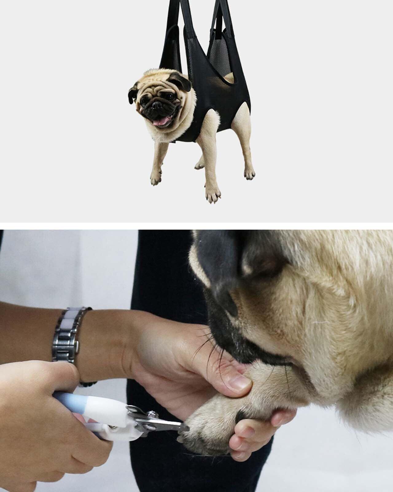 【多機能ペットケアサポート】爪切り、耳掃除、顔拭き、薬の投与など、さまざまなケアに役立ちます。この吊り下げ犬用ハンモックを使えば、ペットをしっかりと固定でき、美容ケア中の動きを抑えやすくなります。簡単に毛のトリミングやグルーミングができ、飼い主の負担も軽減されます。