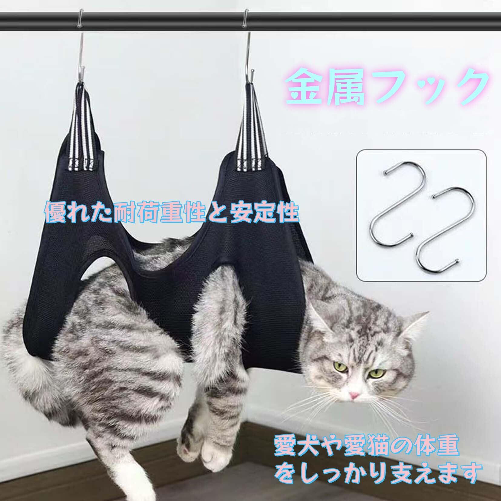 Tibemi猫 犬 つめきり ハンモック グルーミングハンモック ペット 美容ハンモック猫つめきり便利グッズ 猫 つめきり 暴れない猫爪切りハンモック 犬 ハンモック 爪切り補助具使いやすい吊り下げ式 高耐荷重 快適 通気性歯磨き 耳掃除 肉球ケア小型犬 中型犬 自宅ケア ペット用品-ブラック||XS-長43CM*幅53CM