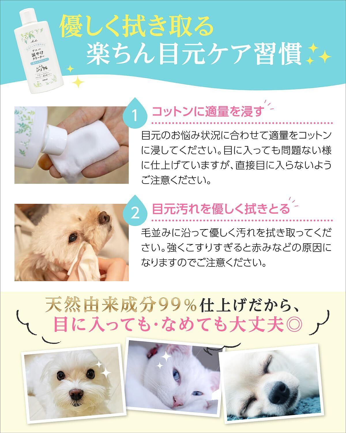 【獣医師監修“天然由来成分99%”犬猫用 涙やけクリーナー】 ワンちゃん猫ちゃんが自分でケアできない「目元悩み」のために開発された、天然由来成分仕上げの犬猫用 低刺激 涙やけクリーナー。