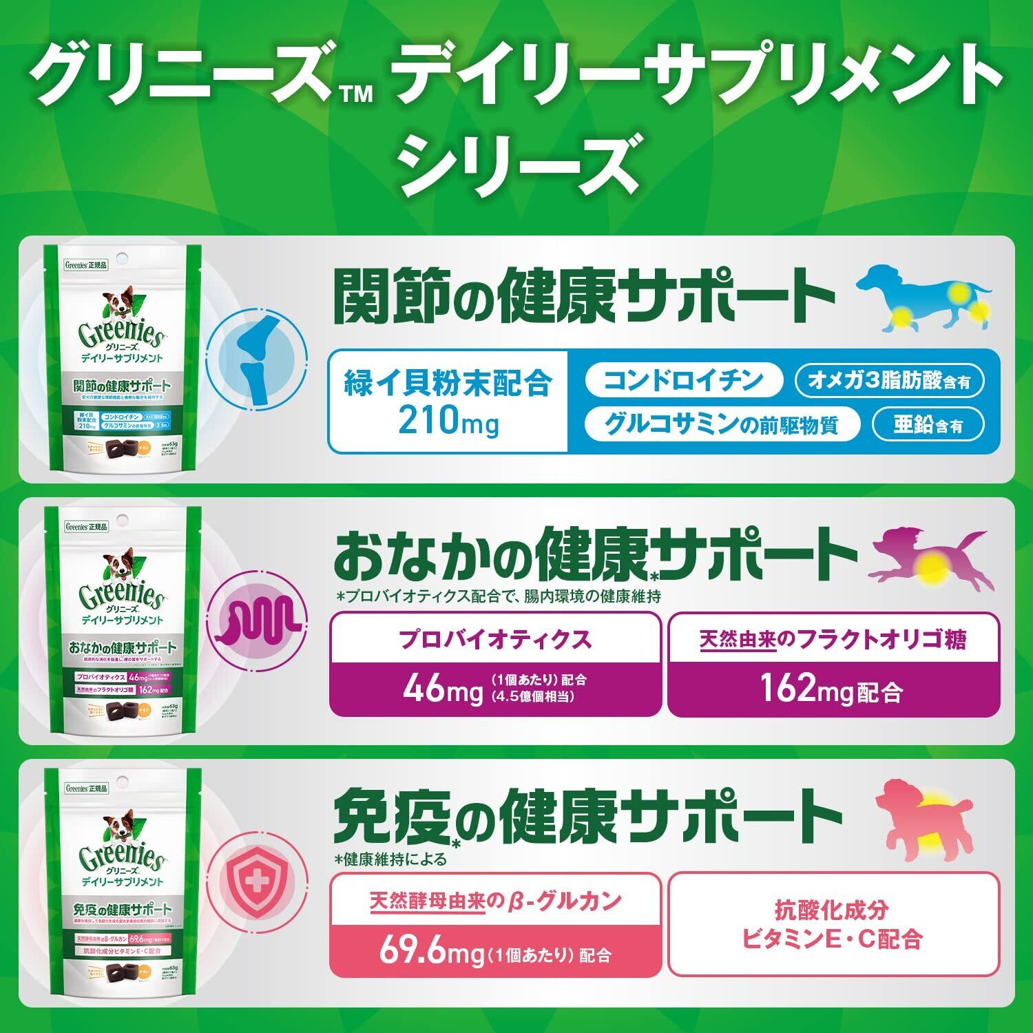 グリニーズ デイリーサプリメント 成犬用 関節の健康サポート 126g(42粒入) コンドロイチン グルコサミン オメガ3脂肪酸 亜鉛 緑イ貝粉末配合 チキン 犬用おやつ ドッグフード Greenies