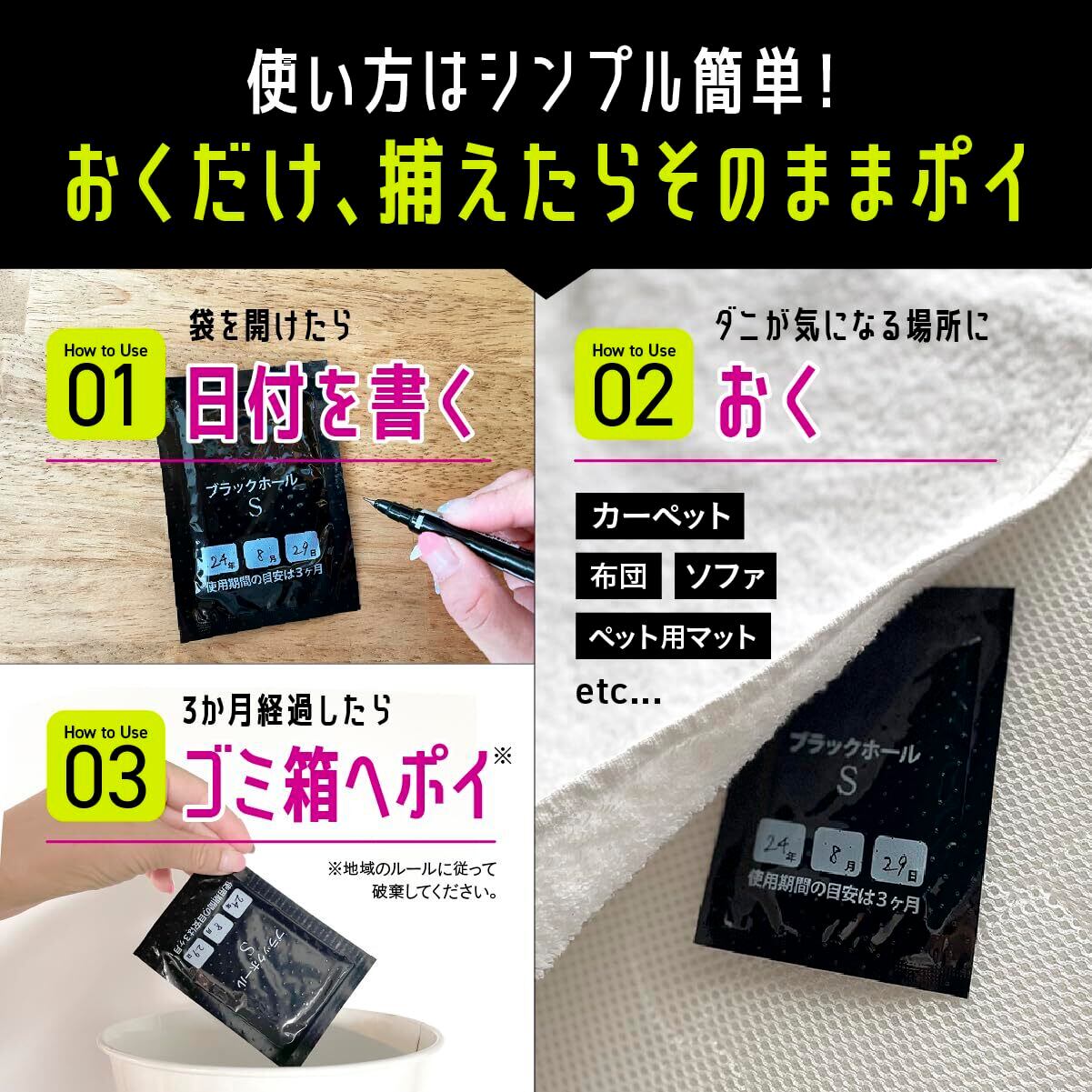 【どこでも置けるコンパクトサイズ】布団・ベッド・ソファ・マット・カーペット・タンスなど、ダニが気になる場所にダニ取りシートを置くだけ。使い終わったらそのままポイでお手入れも簡単!日常のダニ駆除・ダニ対策に。