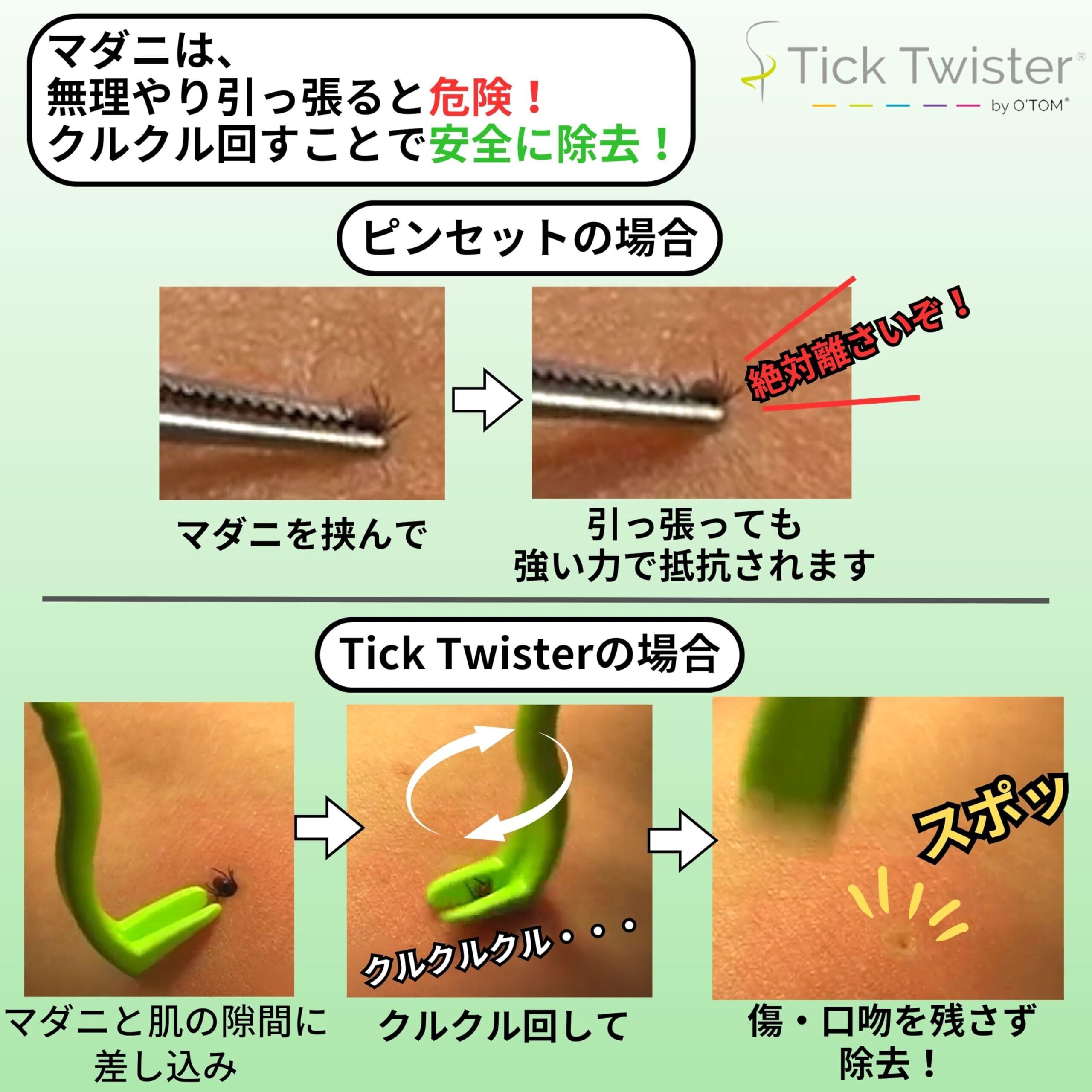【特徴】マダニを潰さずクルクル回して取ることで、ダニの口吻を肌に残さず安全に除去できます。 *無理やりマダニをピンセットなどで引っ張るとダニの口吻が残りまた皮膚を傷つける事で感染症等を引き起こす原因になります。 .