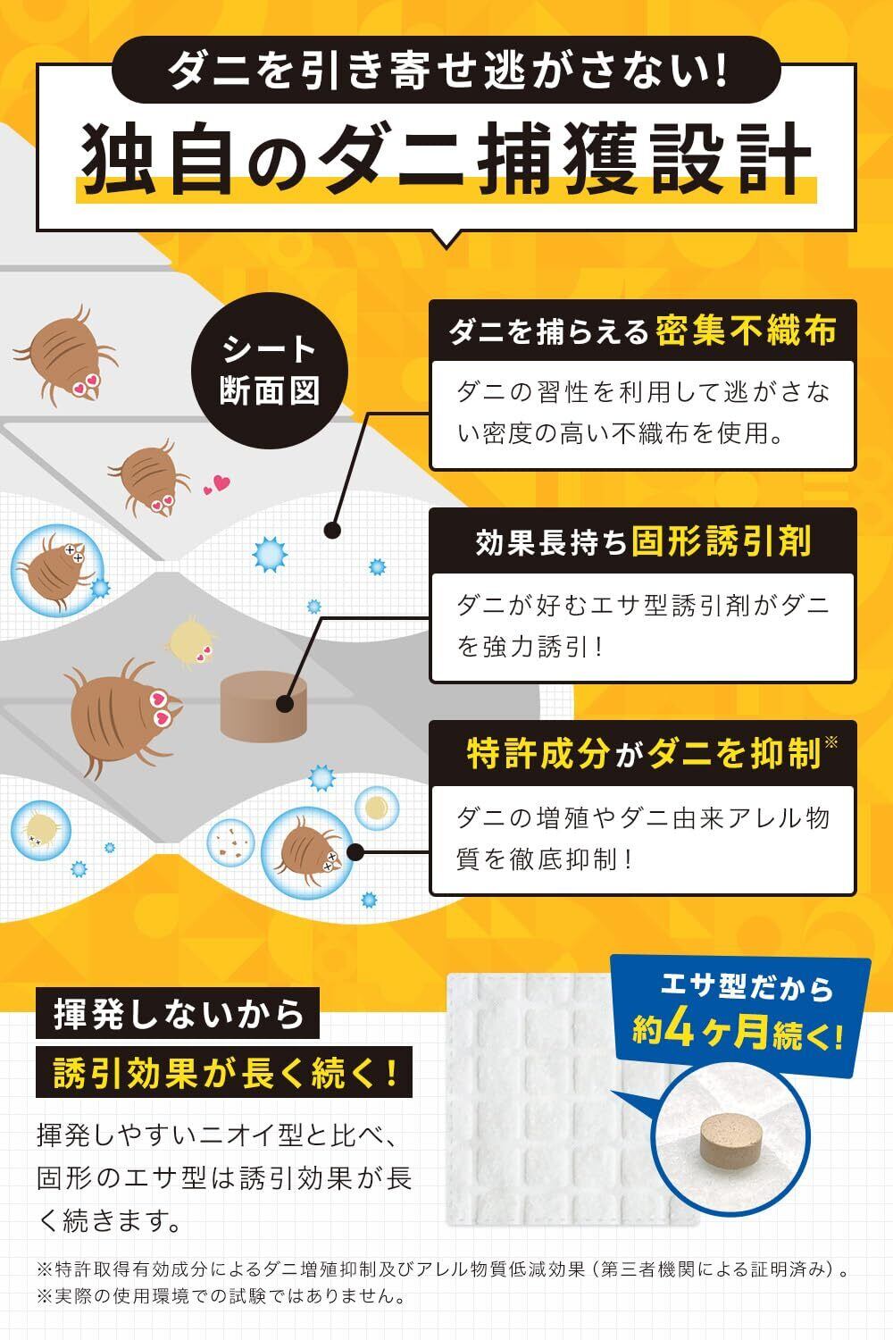 ダニ取りシート 4ヶ月持続 3枚入【誘引×増殖抑制99% アレル物質低減99%】赤ちゃんにも ダニ駆除 酵母
