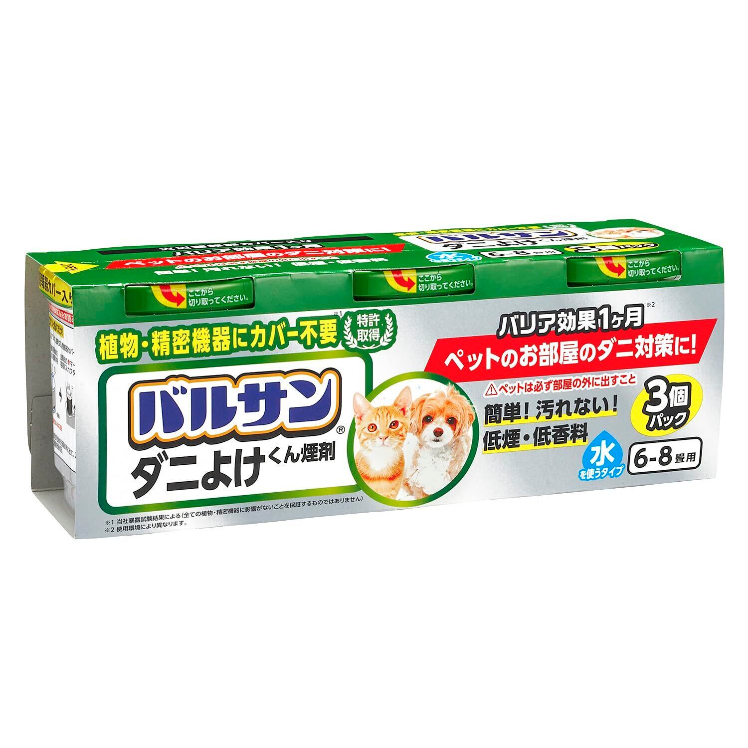 バルサン ダニよけ くん煙剤 ペットのお部屋用 (6~8畳用) 6g×3個パック /植物・精密機器カバー不要/バリア効果1ヶ月/(水始動タイプ)