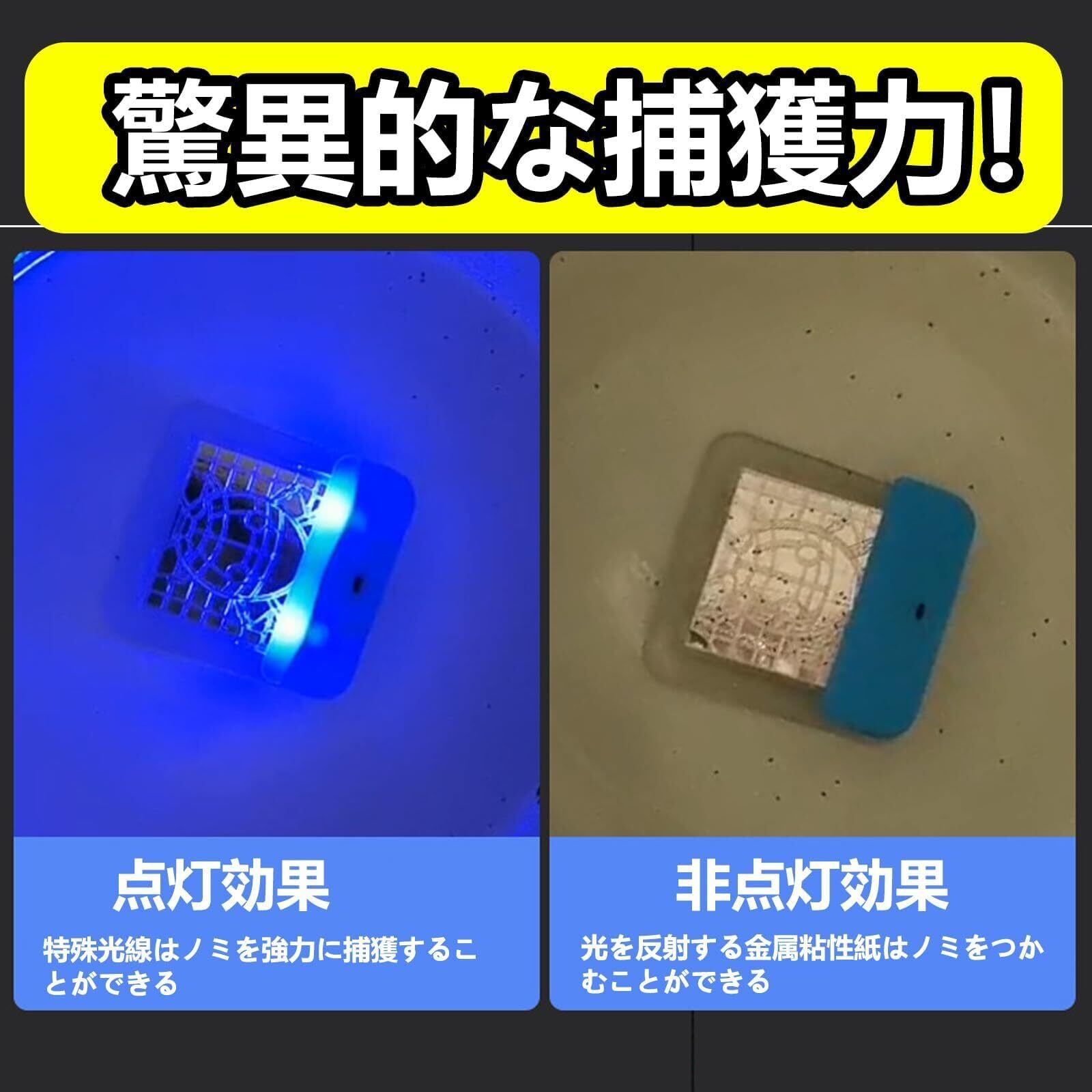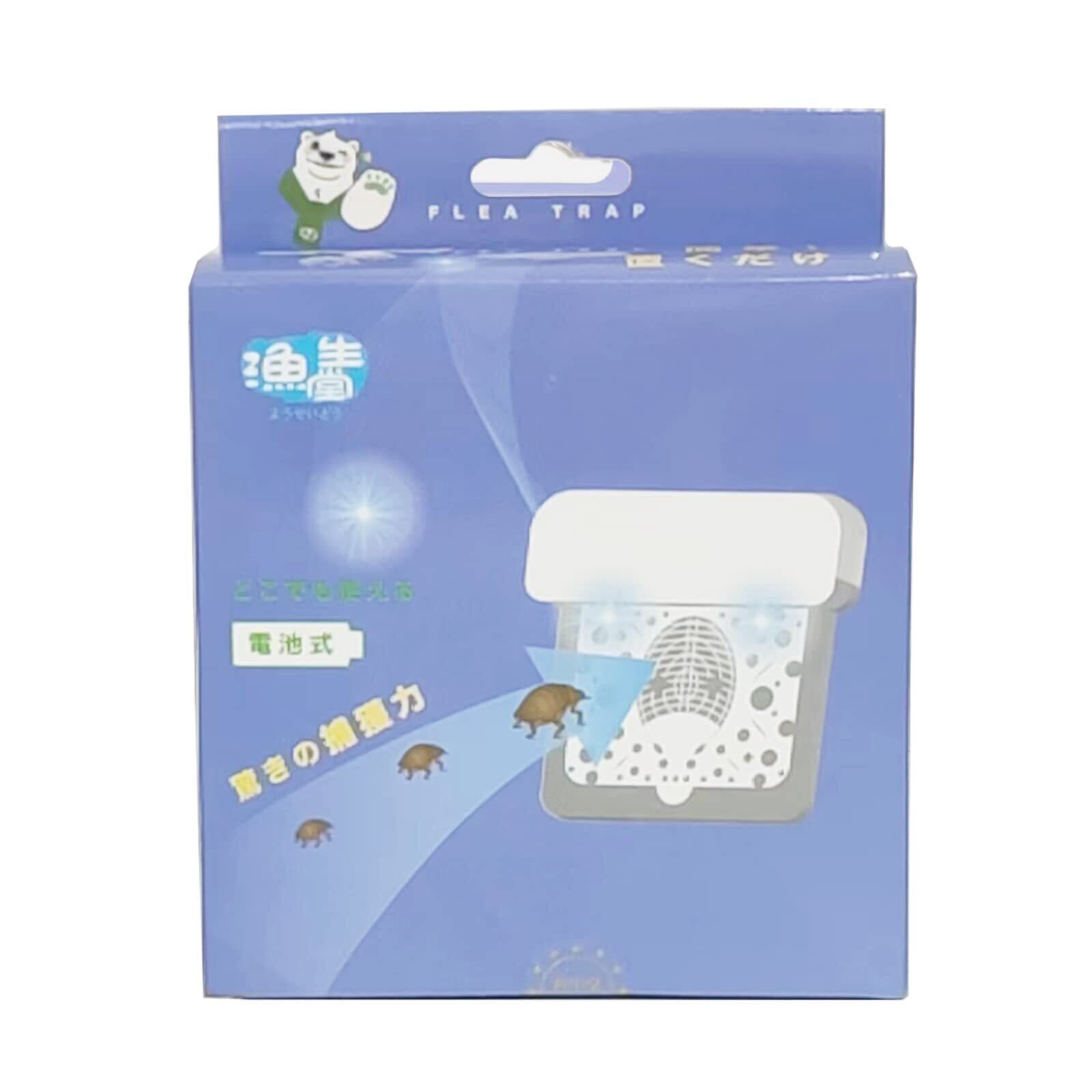 【置くのが簡単で薬剤を使わず安心。】●本体にはノミが”すべり落ちない”特殊な樹脂を使用。●10m先まで届く特殊な光でノミを強力誘引。●光を反射するメタリック粘着シートがノミを捕らえて逃がさない。※夜間消灯した暗い部屋で使用してください。
